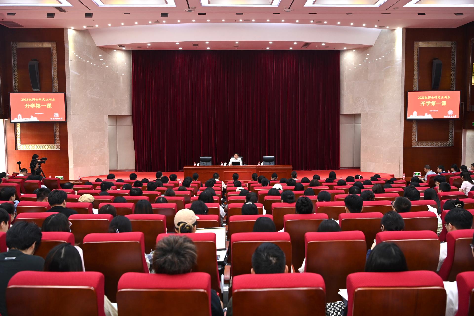 9月19日下午,2023級(jí)博士研究生新生開學(xué)第一課在弘遠(yuǎn)樓105會(huì)議室開講。學(xué)校黨委書記趙德武授課,全體2023級(jí)博士研究生新生聽課,研究生院等相關(guān)職能部門負(fù)責(zé)人到課聽講。
