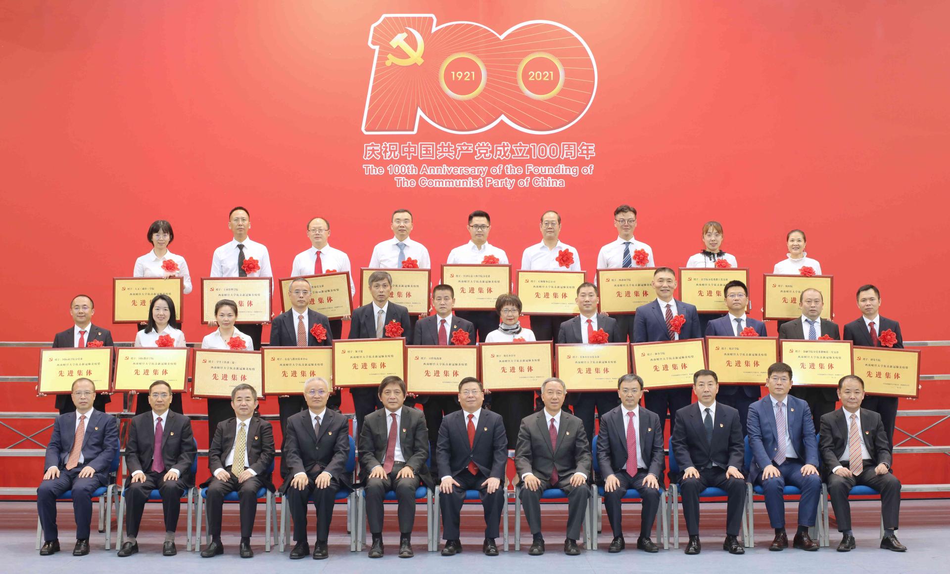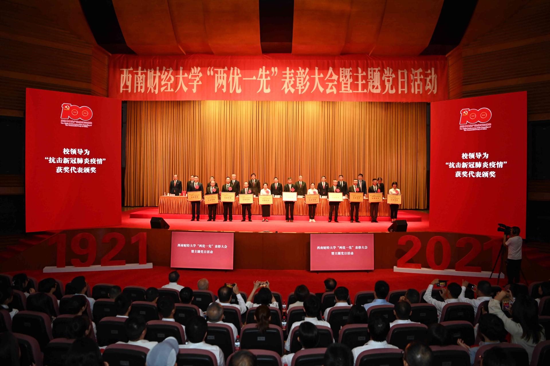 百年大黨恰風華,砥礪初心向復興!6月30日,西南財經大學柳林校區大學生活動中心禮堂氣氛莊重熱烈。學校在此隆重舉行“兩優一先”表彰大會暨“奮斗百年路 啟航新征程”主題黨日活動,慶祝中國共產黨成立100周年,回顧中國共產黨百年奮斗的光輝歷程,表彰優秀共產黨員、優秀黨務工作者和先進基層黨組織,表彰新冠疫情防控中的先進集體和先進個人,舉行主題黨日活動和新黨員入黨宣誓、老黨員重溫入黨誓詞,動員全校黨員干部和師生員工立足“兩個大局”,心懷“國之大者”,永葆黨的初心使命,奮力書寫時代答卷,為建設財經特色鮮明的世界一流大學,為加快實現教育現代化、建設高等教育強國,為建設社會主義現代化強國而努力奮斗。全體校領導,學校老領導,黨委委員、紀委委員,全體中層干部,“兩優一先”代表,抗擊新冠肺炎疫情工作優秀團隊和優秀個人代表,學校第十三次黨代會代表,學校特聘組織員,各分黨委、黨總支、直屬黨支部專職組織員,教工黨支部書記、學生黨支部書記代表,師生黨員代表參加大會。黨委書記趙德武講話,黨委副書記、校長卓志主持表彰大會。