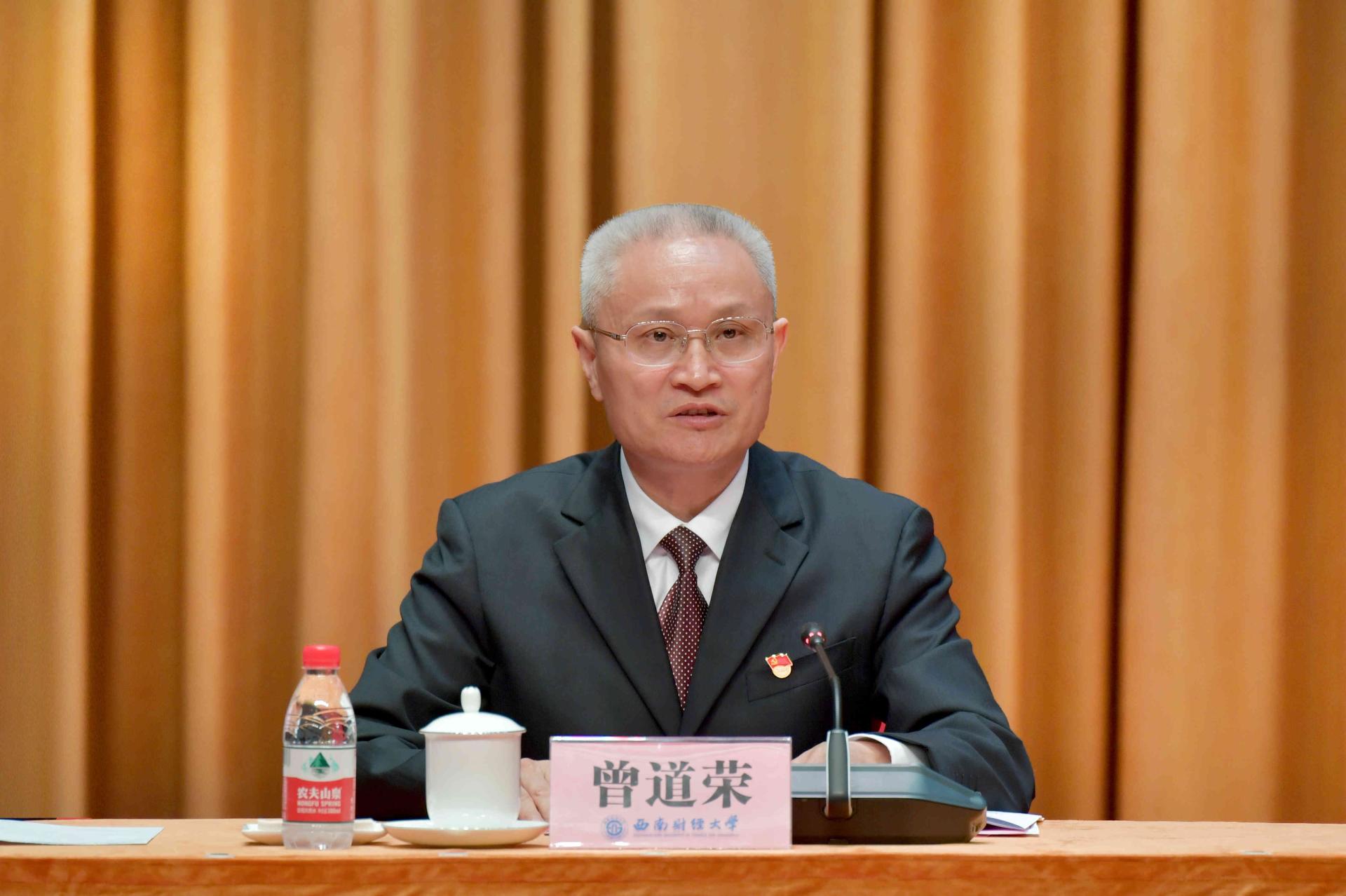 趙德武指出,百年黨史恢弘巨著,教育事業是光輝篇章,西南財大是精彩一頁。他回望了學校在黨的堅強領導下繪就的團結奮斗、搶抓機遇、創新發展、追求卓越壯麗畫卷。他指出,在新民主主義革命時期、社會主義革命和建設時期、改革開放和社會主義現代化建設新時期、中國特色社會主義新時代,學校堅定以黨旗引領航向,走過了一條教育報國、團結奮進、追求卓越之路;一代又一代信仰堅定、奮斗奉獻的西財共產黨人,奮力為黨旗增輝添彩,堅守立德樹人初心和為黨育人、為國育才使命,用熱血和生命書寫了璀璨厚重時代華章;我們矢志讓黨旗永遠高揚,形成了彌足珍貴的重要經驗,堅持黨的全面領導是根本保證、立德樹人是根本任務、服務國家是根本使命、改革創新是根本動力、師生員工是根本依靠,這是我們管黨治黨、辦學育人、繼續前進、開創未來的制勝法寶。