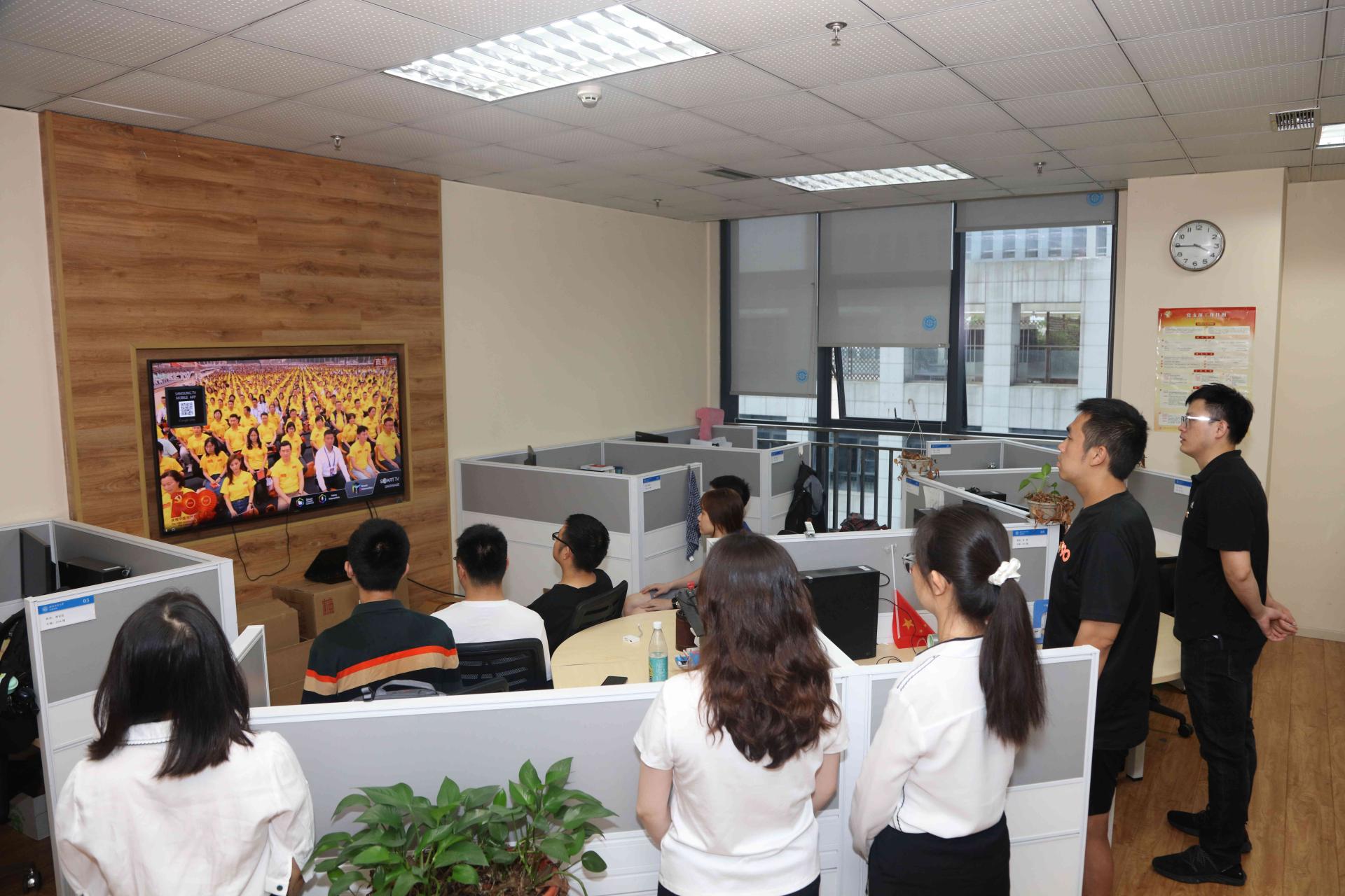 8點整,慶祝大會正式舉行。100響禮炮響徹云霄,71架戰鷹翱翔天際,五星紅旗在天安門廣場上冉冉升起,集中收看的西財師生全體肅立,跟隨電視直播一同高唱中華人民共和國國歌,愛黨愛國之情在這一刻升騰。在各個收看點,西財師生聚精會神聆聽習近平總書記的重要講話,在筆記本上認真記下習近平總書記重要講話精神,不時為習近平總書記的精彩講話而激動振奮,各個收看點多次響起熱烈的掌聲。當習近平總書記重要講話結束時,學校各個收看點現場響起長時間熱烈掌聲,師生們熱淚盈眶,手中的黨旗招展成一片紅色的海洋,大家發自內心地為我們黨的百年華誕自豪歡呼,共同慶祝中國共產黨百年華誕,共同祝愿祖國和世界的明天更加美好。