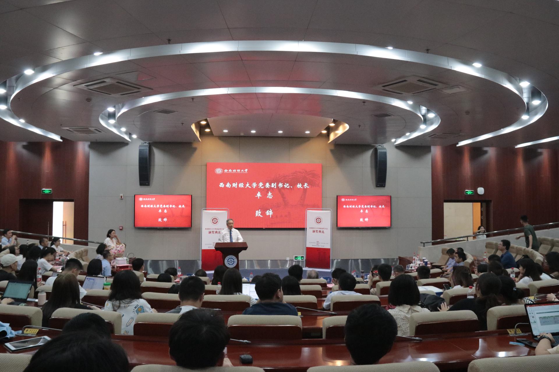 尹慶雙宣讀了《關(guān)于表彰西南財(cái)經(jīng)大學(xué)第六屆曾康霖獎(jiǎng)學(xué)金獲得者的決定》,鼓勵(lì)獲獎(jiǎng)學(xué)生再接再厲,在金融學(xué)科研究中取得更大成果。他希望全體同學(xué)以獲獎(jiǎng)同學(xué)為榜樣,在金融學(xué)科的星辰大海中與時(shí)俱進(jìn),不斷跋涉學(xué)術(shù)思想的高峰。曾康霖、卓志、各學(xué)院(中心)負(fù)責(zé)人及獲獎(jiǎng)學(xué)生導(dǎo)師一同為獲得本次獎(jiǎng)學(xué)金的同學(xué)頒獎(jiǎng)。金融學(xué)院副院長(zhǎng)羅榮華介紹了本次獎(jiǎng)學(xué)金評(píng)審情況。