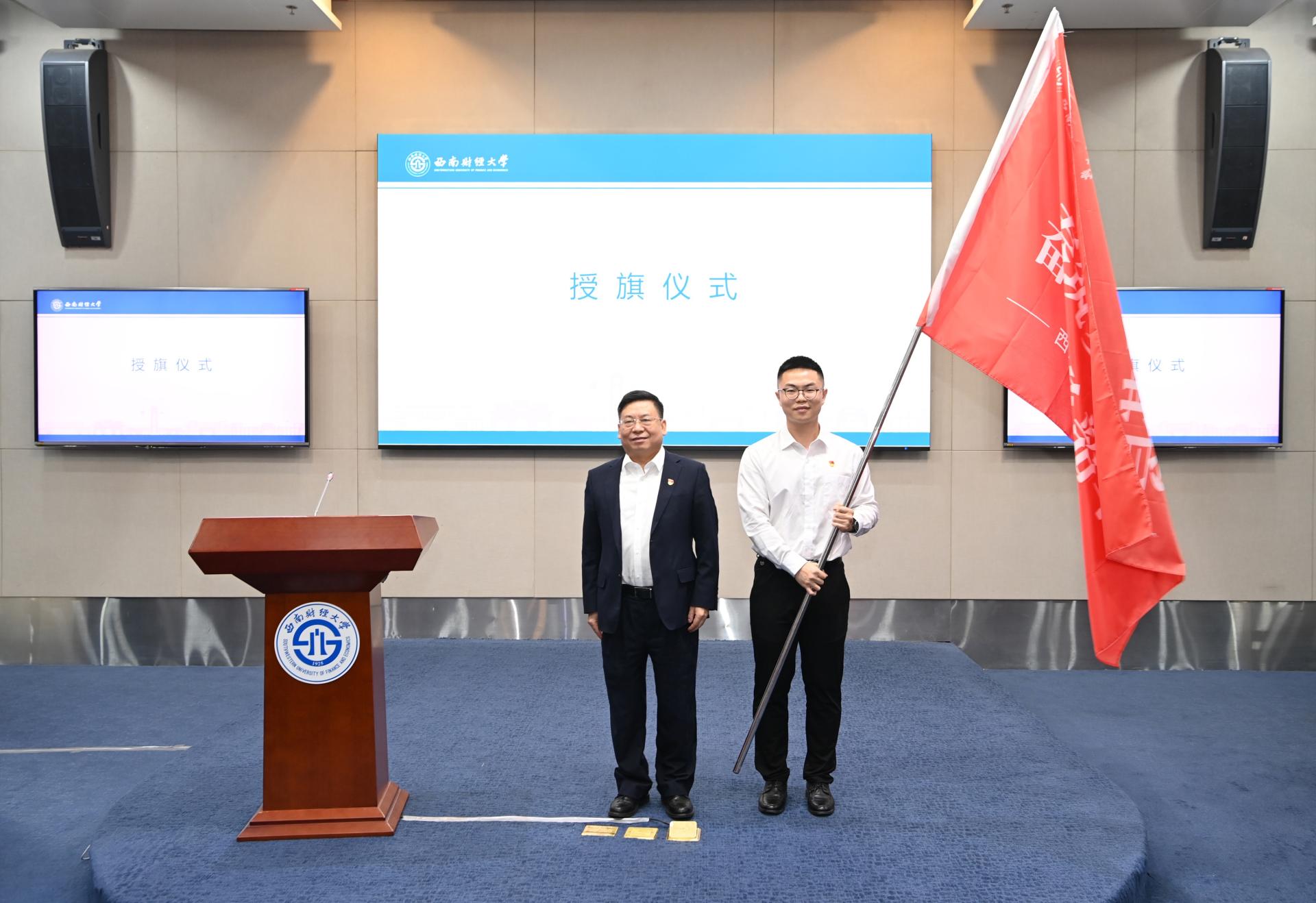 開班式上,2018級碩士畢業生伍西貝代表全體選調生發言,回顧求學與成長之路,感謝母校的悉心培養,表明了扎根基層、為實現中華民族偉大復興矢志奉獻的堅強決心。與會領導向各省選調生代表贈送了書籍《習近平在正定》。在出征式上,黨委書記趙德武向選調生代表授旗。接旗后,全體選調生對照公務員誓詞莊嚴宣誓。