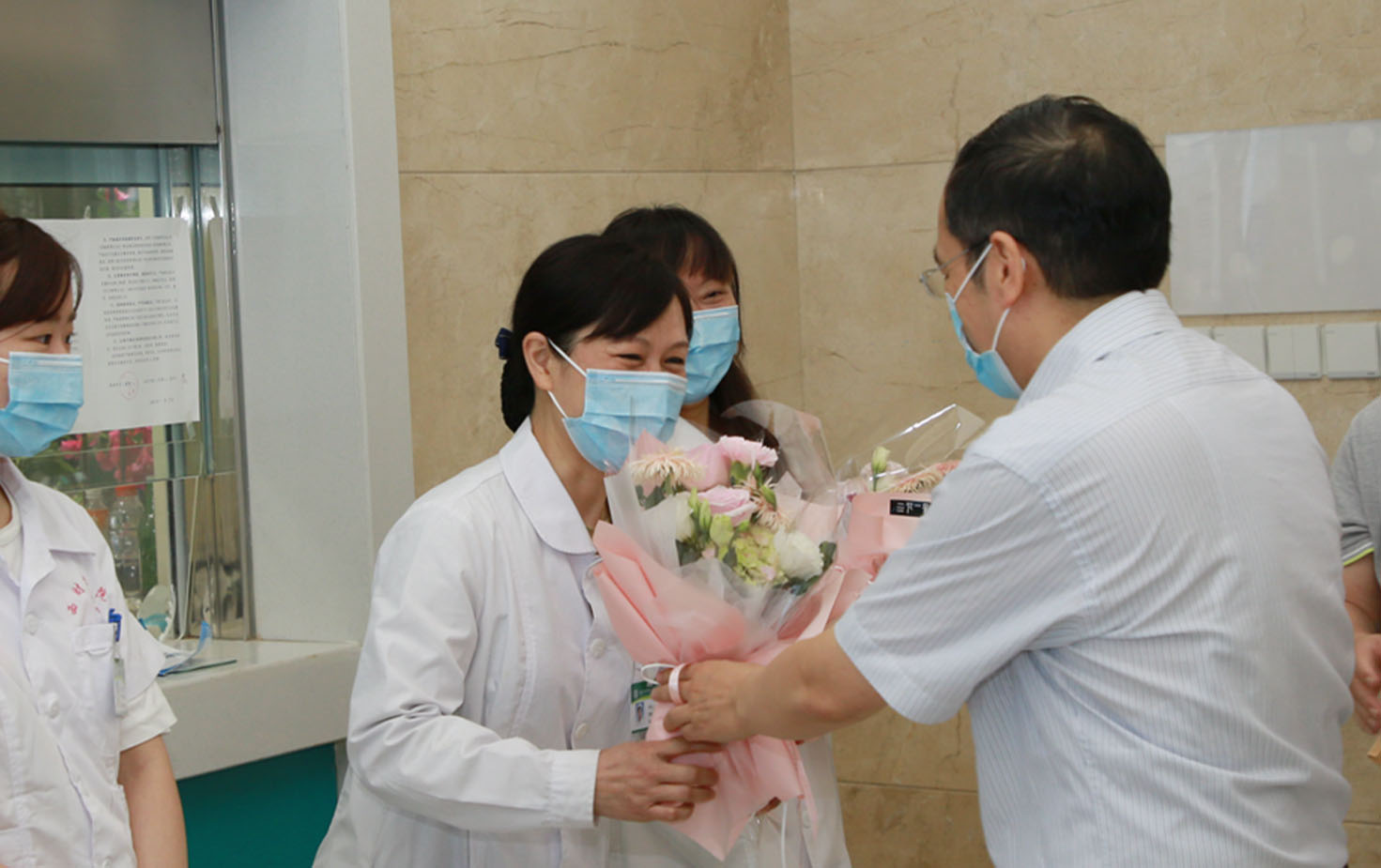 歐兵、史代敏代表學(xué)校向全體醫(yī)護(hù)人員致以節(jié)日的慰問(wèn),并與醫(yī)護(hù)人員親切握手,送上節(jié)日的鮮花,對(duì)大家的辛勤付出表示衷心感謝。史代敏在慰問(wèn)時(shí)指出,一年多來(lái),在學(xué)校黨委的堅(jiān)強(qiáng)領(lǐng)導(dǎo)和統(tǒng)一部署下,校醫(yī)院全體醫(yī)護(hù)人員在校園疫情防控工作中不畏風(fēng)險(xiǎn)、不怕困難,始終堅(jiān)守在校園疫情防控一線,以最大努力確保防疫組各項(xiàng)防控措施落實(shí)落細(xì),在校園疫情防控阻擊戰(zhàn)和常態(tài)化疫情防控工作中經(jīng)受住了考驗(yàn),為學(xué)校疫情防控、守衛(wèi)平安校園做出了突出貢獻(xiàn)。