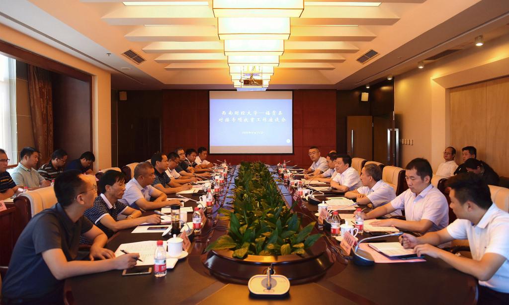 8月13日,云南省怒江州福貢縣縣委書記楊永鑄率福貢縣代表團一行到我校對接專項扶貧工作。學校在騰驤樓604會議室召開對接工作座談會,我校黨委書記趙德武和楊永鑄講話,校長、黨委副書記卓志主持會議。黨委常委、副校長史代敏,部分職能部門、學院和后勤服務總公司負責人參加了會議。楊永鑄首先介紹了福貢縣脫貧攻堅工作情況,并代表福貢縣各族干部群眾對我校一直以來給予的關心和支持表示衷心感謝。他表示,西南財經大學自2013年起承擔福貢縣的專項扶貧任務,西財師生與福貢人民心心相連,在脫貧攻堅的道路上結下深厚友誼,先后選派6名骨干人員到福貢掛職,展現了雙方密切協作、共同建設全面小康社會的決心和努力。希望未來西財在加快建設中國特色世界一流學科的進程中繼續關心支持福貢發展,在易地扶貧搬遷“穩得住”、脫貧攻堅“百日提升行動”、“防返貧”工作上給予大力支持和幫忙,確保鞏固脫貧成果,堅決奪取脫貧攻堅全面勝利。
