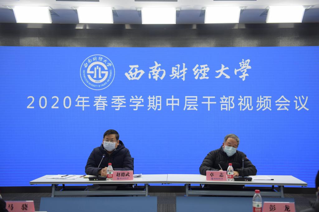 2月22日,學校召開2020年春季學期中層干部視頻會議,安排部署今年學校工作和當前重點工作。黨委書記趙德武,校長、黨委副書記卓志,黨委常委、常務副校長彭龍,黨委副書記馬驍、曾道榮,黨委副書記、紀委書記范衛宏,黨委常委、副校長歐兵、尹慶雙、史代敏、張邦富、李永強以及黨委委員在主會場參加會議,全體中層干部參加視頻會議。趙德武主持會議。