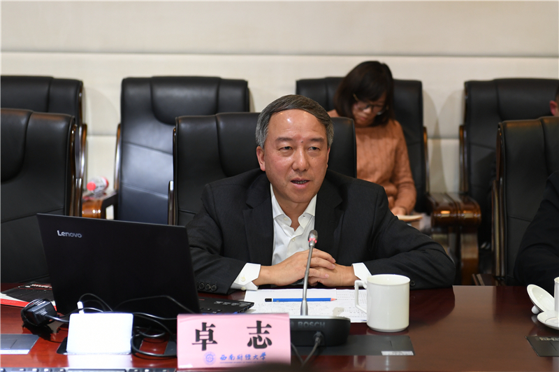 卓志介紹了我校歷史沿革以及近年來人才培養、學科建設、科研與社會服務、師資建設、國際交流與合作等情況。卓志指出,西南財大和電子科大學科雖有交叉但互補更多,合作范圍廣。兩校要牢牢把握“金融+”“互聯網+”的發展機遇加強合作,在培養復合型高精尖人才上做出實績。他希望兩校能高標準高起點,在最具優勢領域實現強強聯合,并以本科人才培養為切入點,將“交叉復合人才培養”拓展到科研及其他領域,培養更多未來潛力巨大的交叉復合型行業領導人才。