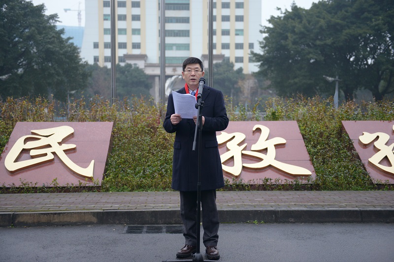 律回春暉漸,萬象始更新。2020年1月1日清晨,西南財經(jīng)大學(xué)元旦升國旗儀式在柳林校區(qū)與光華校區(qū)舉行。一夜的綿柔細雨滋潤了氣象一新的西財校園,在21世紀又一個嶄新十年的起點,200余名西財師生齊聚升旗點,莊嚴而喜悅地慶祝新年的到來。黨委副書記、紀委書記范衛(wèi)宏與證券與期貨學(xué)院學(xué)院、經(jīng)濟學(xué)院師生代表,校衛(wèi)隊員和國旗班成員等參加了柳林校區(qū)升國旗儀式;黨委常委、副校長尹慶雙與會計學(xué)院師生及校衛(wèi)隊員等參加了光華校區(qū)升國旗儀式。相關(guān)職能部門負責(zé)人主持升國旗儀式。