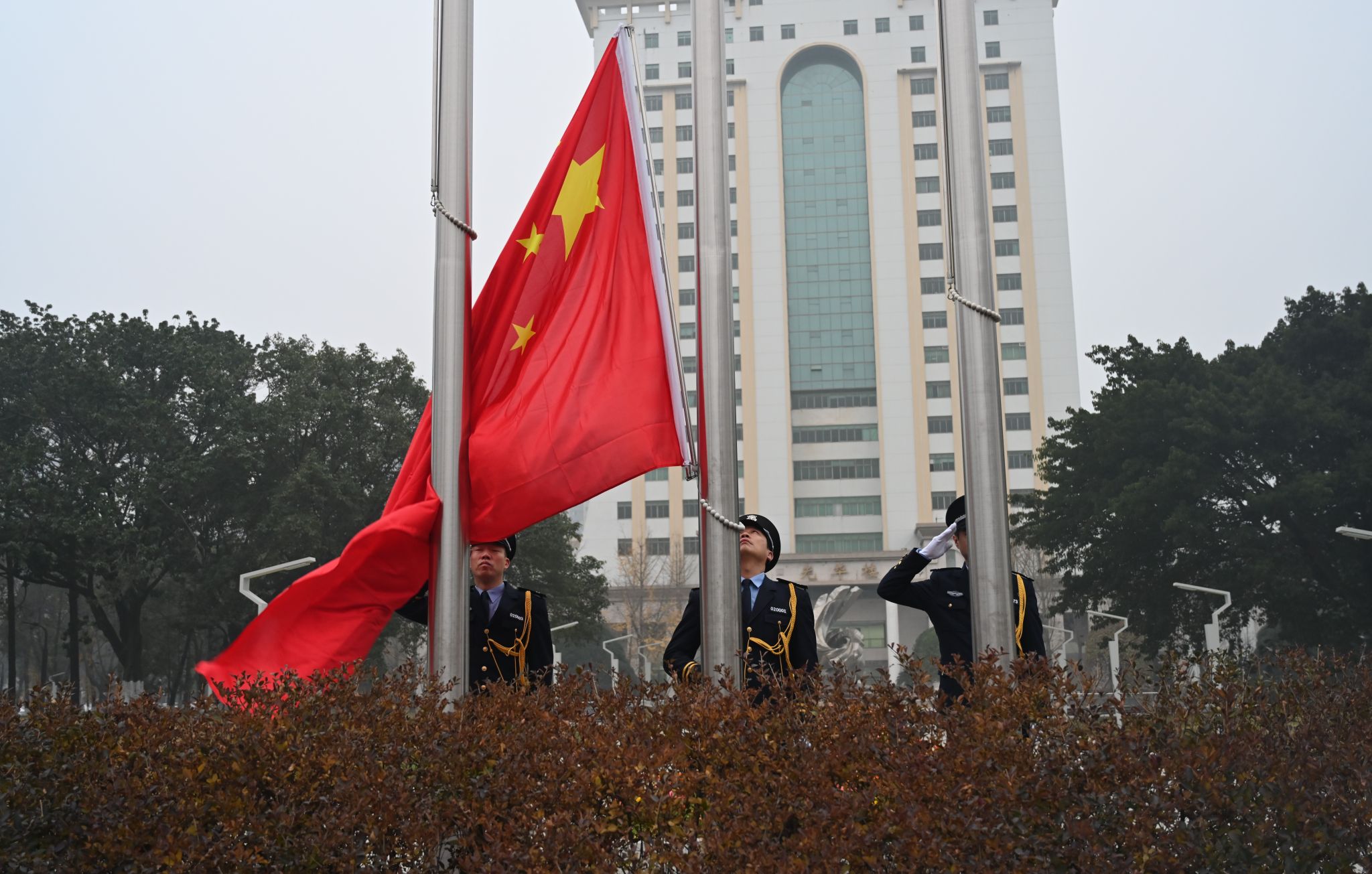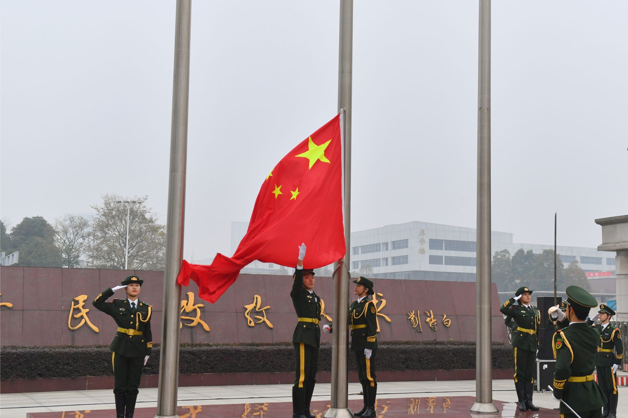 一元復始,萬象更新。2024年1月1日清晨,我校在兩校區北大門廣場隆重舉行升國旗儀式,百余名西財師生員工共聚國旗下,以真摯的情感和積極向上的精神風貌慶祝新年的到來。學校黨委常委、副校長桂富強、馬永強,兩校區師生代表、校衛隊員分別參加了柳林和光華校區舉行的升國旗儀式。相關職能部門負責人主持升國旗儀式。