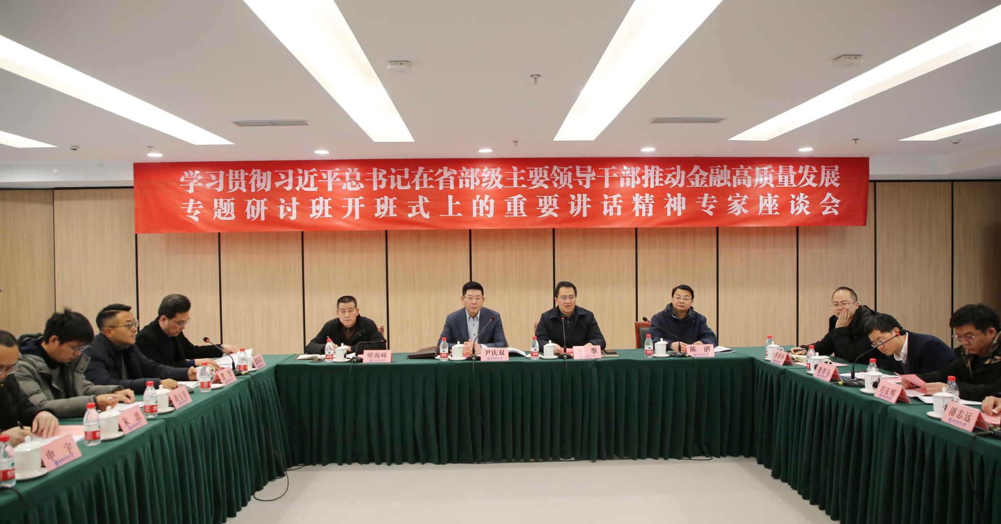 3月4日,學校學習貫徹習近平總書記在省部級主要領導干部推動金融高質量發展專題研討會開班式上的重要講話精神專家學者座談會在誠正樓323會議室召開,黨委常委、副校長尹慶雙出席會議并講話,黨委常委、副校長王擎主持會議。會議由黨委宣傳部,科研處,習近平經濟思想研究院,金融學院、中國金融研究院聯合主辦,各相關單位負責人、習近平經濟思想研究院入駐團隊負責人及專家學者參加座談會。