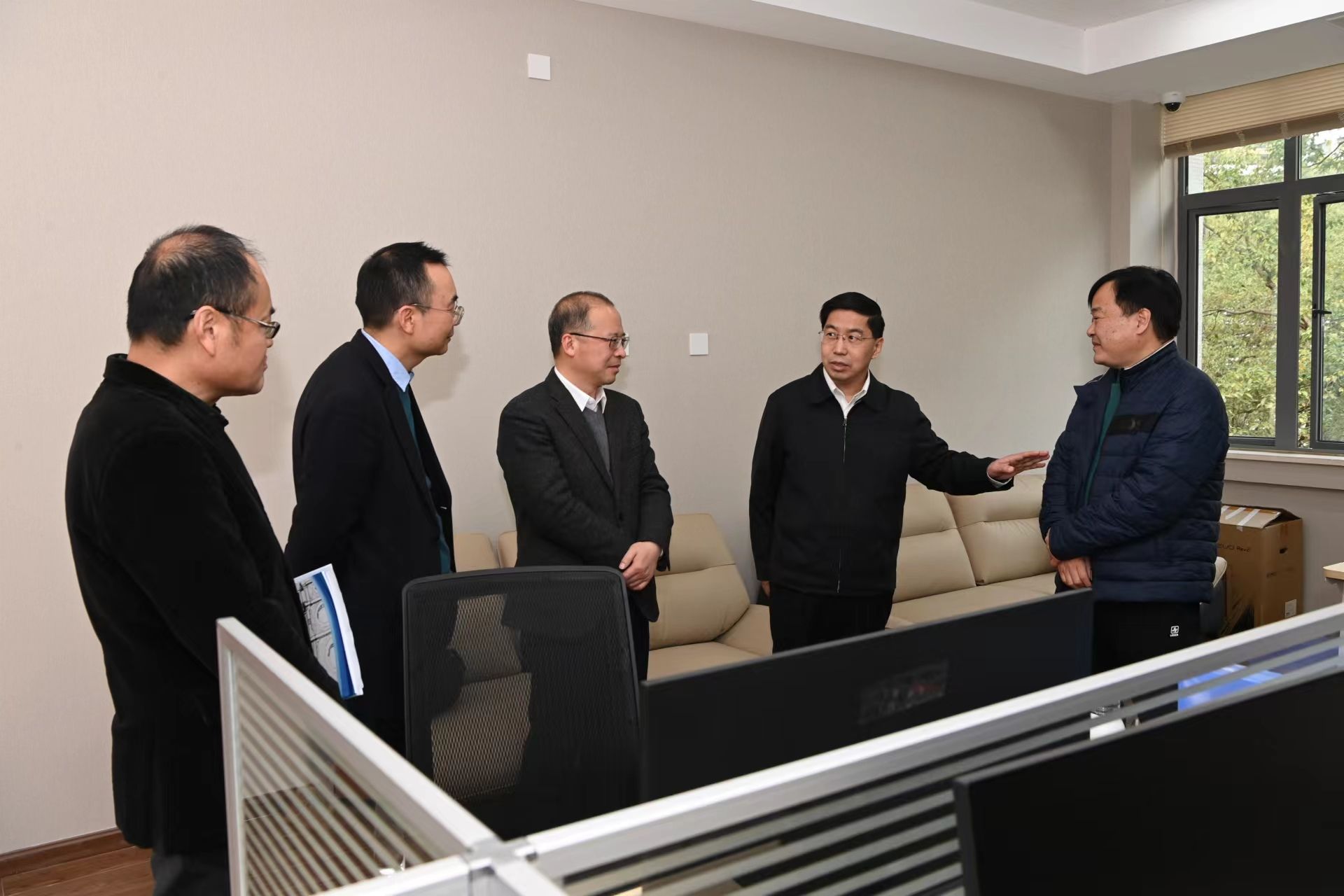 在數(shù)字經(jīng)濟(jì)與交叉科學(xué)創(chuàng)新研究院,趙建軍、李永強(qiáng)一行深入團(tuán)隊(duì)辦公室,詳細(xì)了解團(tuán)隊(duì)研究重點(diǎn)、在研項(xiàng)目進(jìn)展、發(fā)展規(guī)劃和團(tuán)隊(duì)建設(shè)情況。趙建軍強(qiáng)調(diào),各團(tuán)隊(duì)要聚焦實(shí)踐需求,在積極服務(wù)經(jīng)濟(jì)社會(huì)發(fā)展上下大功夫,努力做出典型成果并加強(qiáng)宣傳推廣。李永強(qiáng)指出,要以科研團(tuán)隊(duì)為紐帶、以平臺(tái)為依托,加強(qiáng)團(tuán)隊(duì)內(nèi)部及團(tuán)隊(duì)間協(xié)作,開(kāi)展有組織的科研,促進(jìn)科研團(tuán)隊(duì)和平臺(tái)相互協(xié)同,努力產(chǎn)出高質(zhì)量、高水平、有影響力的科研成果,充分發(fā)揮我校在服務(wù)經(jīng)濟(jì)社會(huì)發(fā)展中的應(yīng)有作用。