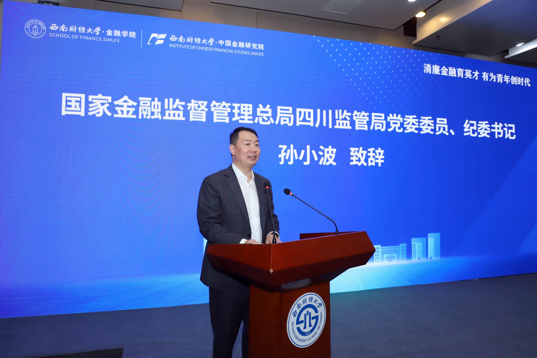 孫小波在致辭中表示,金融是國民經濟的血脈,是國家核心競爭力的重要組成部分。加強清廉金融文化建設是凈化行業風氣、防治金融腐敗的重要舉措,也是防范金融風險、助推經濟金融健康發展的關鍵。四川監管局與西南財經大學合作推進清廉金融進高校活動取得豐碩成果,清廉金融建設是金融行業邁向新征程的重要一步,希望通過持續深度合作、共同培養出遵守規章制度、嚴格自我要求的高素質金融從業人員,推動金融行業生態持續向好發展,為建設金融強國、推進中國式現代化貢獻力量。