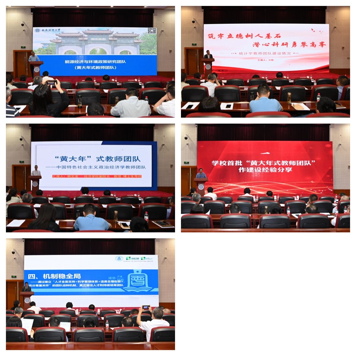 會上,會計與財務教師團隊代表易陽、金融風險與金融安全教師團隊代表董青馬、新時代中國特色社會主義政治經濟學教師團隊代表韓文龍、統計學教師團隊代表蘭偉、能源經濟與環境政策研究教師團隊代表陳建東分別作交流發言,從立德樹人、科研攻關、人才培養、機制創新等方面介紹了團隊建設的好經驗、好做法。