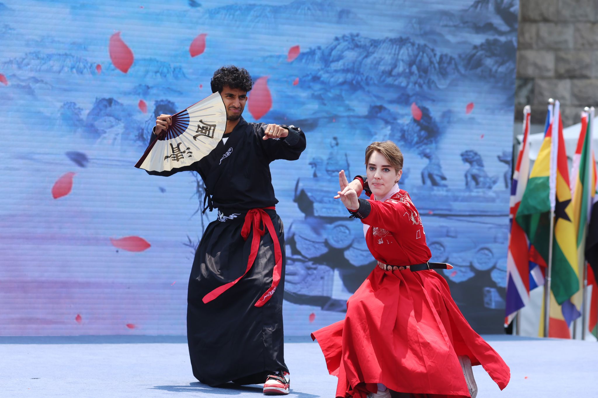 開幕式以富有中國傳統文化色彩的舞獅表演拉開序幕,來自世界各地的同學們以中文歌、古典舞、漢服秀、八卦掌、器樂演奏等多種形式獻上了一場精彩紛呈的文藝匯演。活動當天,現場45個精心布置的展臺帶領師生們感悟多元文化、縱覽世界風情。文化節還設置了互動體驗區,在非物質文化遺產展位,師生們可以親手參與制作糖畫、拓印、竹編等中國傳統手工藝,體驗中國傳統文化獨特魅力。