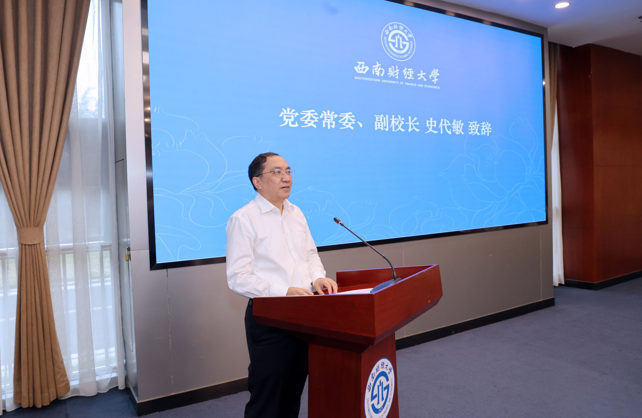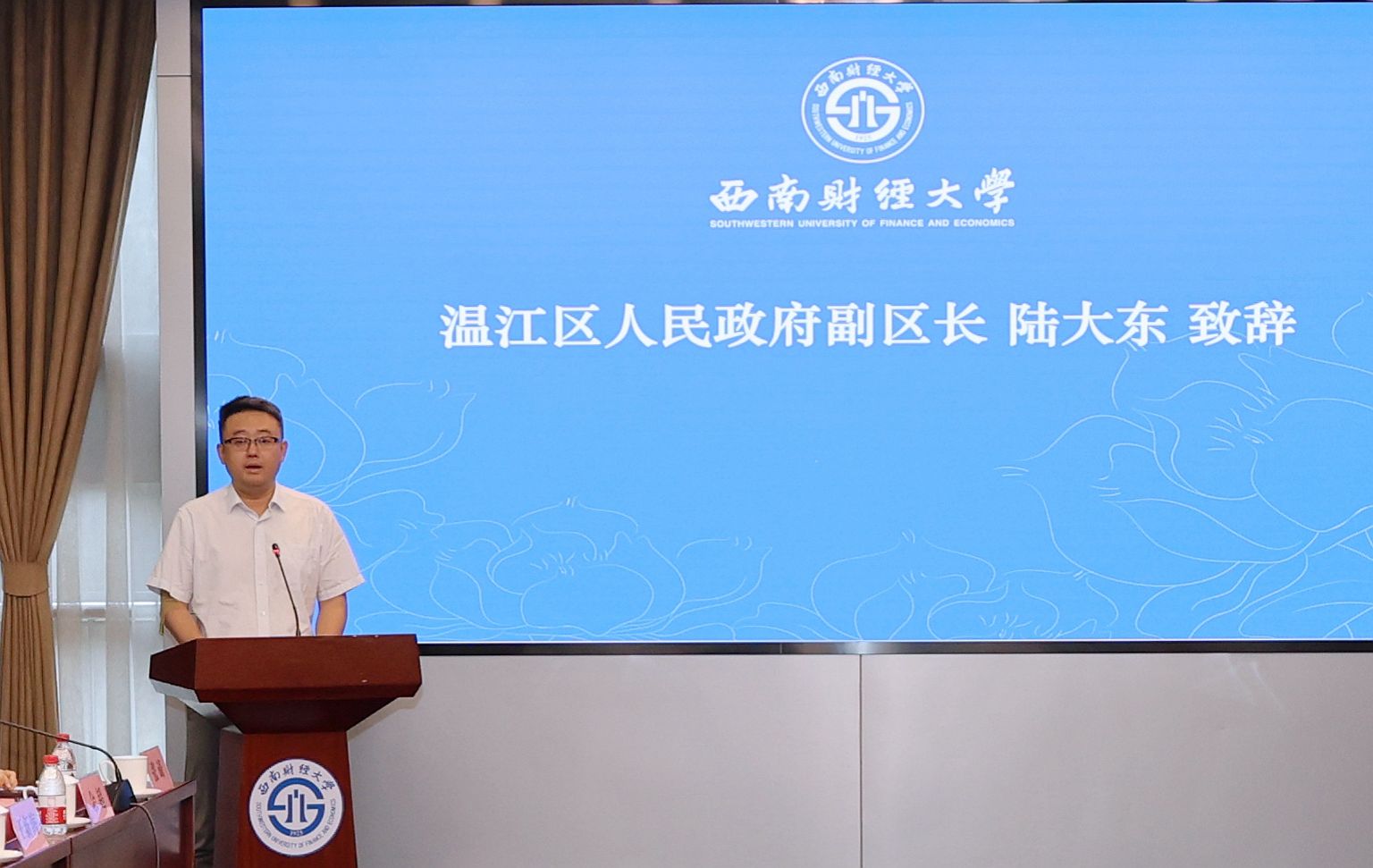 6月6日,學校食品安全共治共管專項工作會在弘遠樓109會議室召開。黨委常委、副校長史代敏,溫江區人民政府副區長陸大東出席會議并致辭,四川省市場監督管理局一級調研員李元榮,成都市市場監督管理局餐飲監管處處長倪李,溫江區市場監管局黨組書記劉輝出席會議。轄區市場監督管理部門、學校紀檢監察辦公室相關負責人、后勤服務總公司負責人、師生代表、全體大宗物資供應商和校內食品經營戶參加會議。