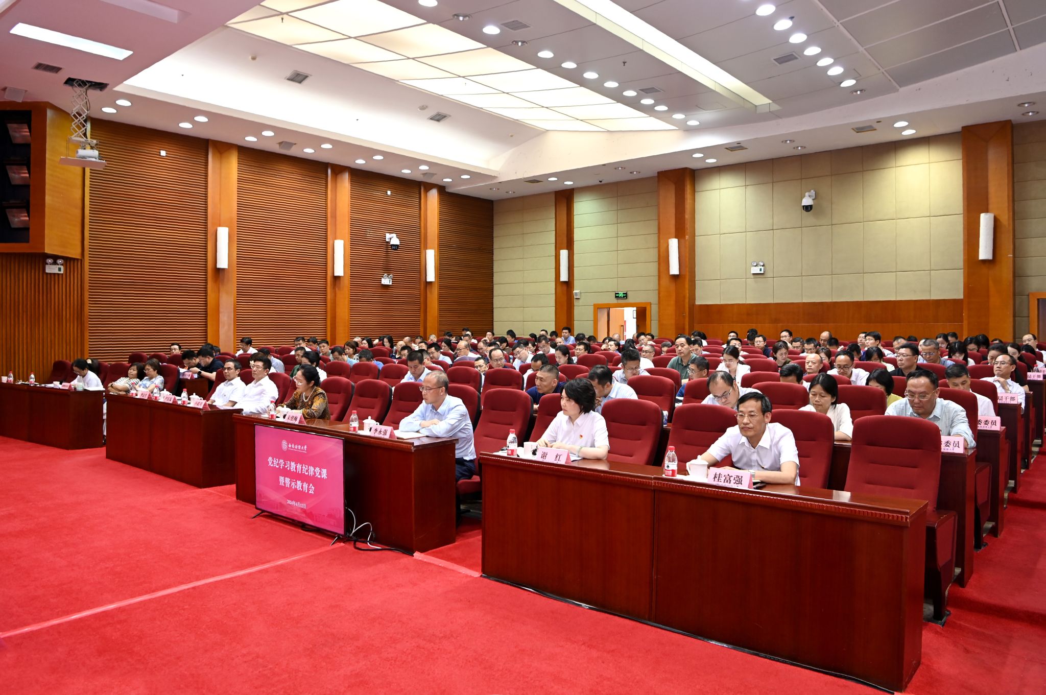 6月12日,學校在騰驤樓137會議室舉行黨紀學習教育專題黨課暨警示教育會。教育部直屬高校黨建工作聯絡員朱健梅到會指導,黨委書記趙建軍講授專題黨課。黨委副書記、校長李永強,黨委副書記、紀委書記孫殿明,黨委副書記謝紅,黨委常委、副校長尹慶雙、桂富強、李志生,學校黨委委員、紀委委員,全體中層干部,特聘組織員,教師支部書記代表,學生支部書記代表,學校黨紀學習教育工作專班成員參加會議。