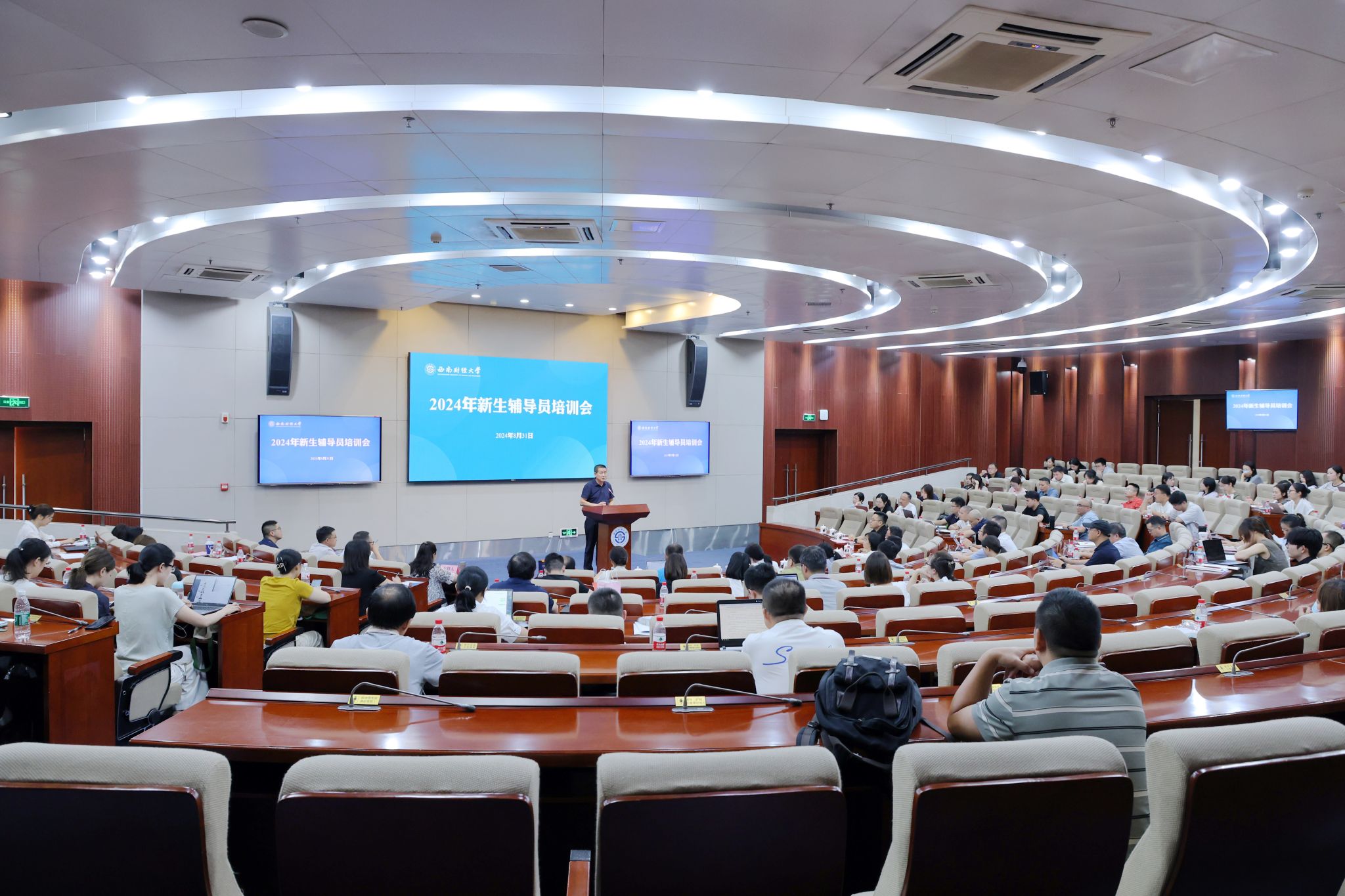8月31日,2024級新生輔導員培訓會在柳林校區(qū)弘遠樓101順利舉行。學校黨委副書記明海峰、各學院(研究院)學生工作負責人、相關職能部門負責人及老師、2024級全體新生輔導員等100余人參加會議。