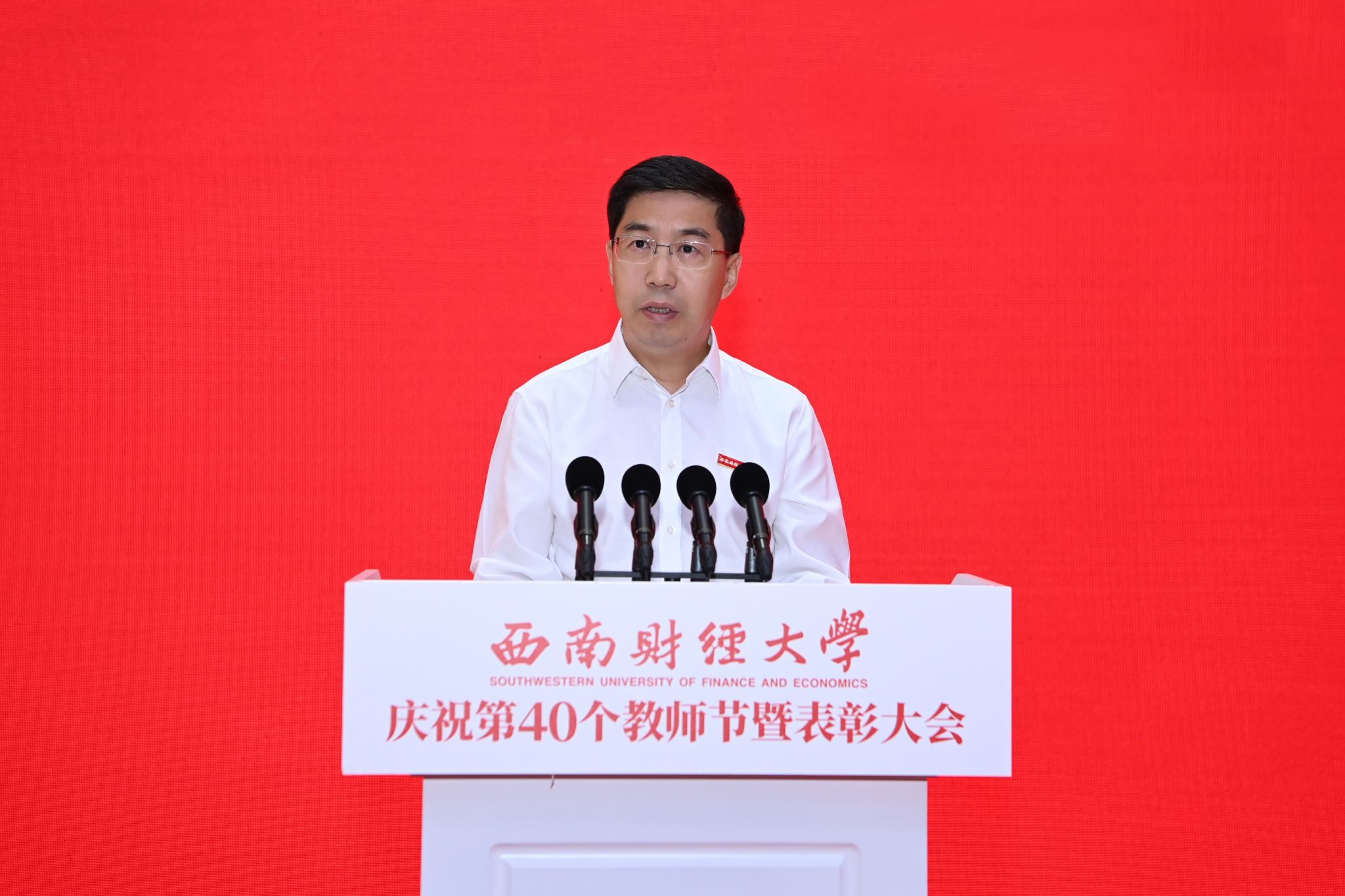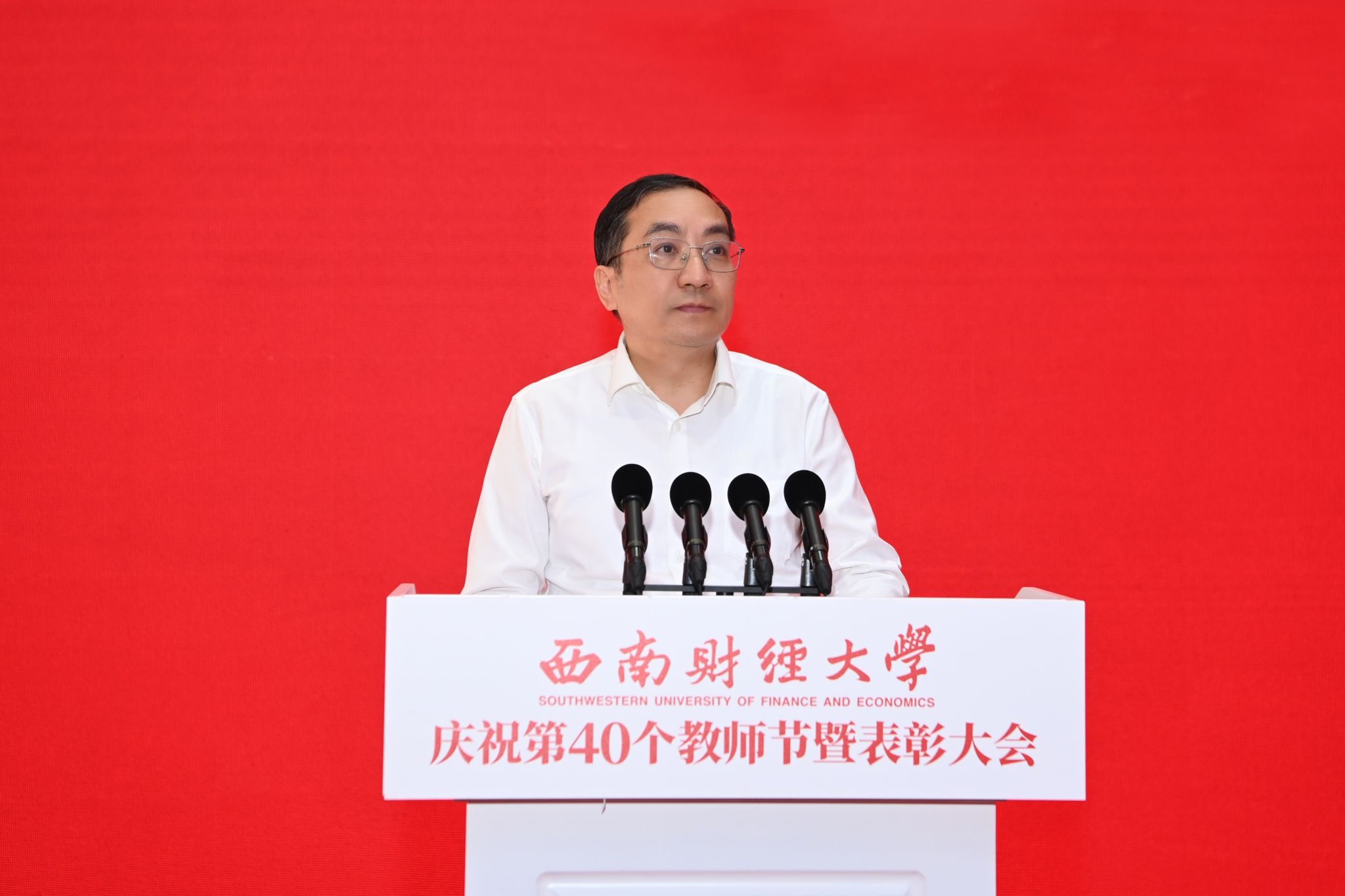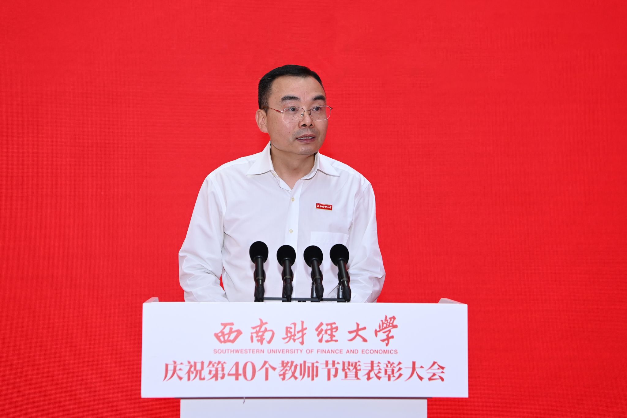 趙建軍指出,長(zhǎng)期以來(lái),學(xué)校黨委把隆重慶祝教師節(jié)作為弘揚(yáng)尊師重教傳統(tǒng)、加強(qiáng)教師隊(duì)伍建設(shè)、增強(qiáng)教師職業(yè)榮譽(yù)感的重要載體,成為學(xué)校思政工作體系和名師大家文化的重要組成部分。廣大西財(cái)教師牢記為黨育人、為國(guó)育才使命,以赤誠(chéng)之心、奉獻(xiàn)之心、仁愛(ài)之心投身教育事業(yè),用實(shí)際行動(dòng)培養(yǎng)了一批批優(yōu)秀人才,詮釋出教育家精神的時(shí)代底色,彰顯出“大國(guó)良師”的西財(cái)風(fēng)采。過(guò)去一年,全體教師學(xué)思踐悟“鑄忠誠(chéng)”、躬耕教壇“育英才”、頂天立地“治學(xué)問(wèn)”、經(jīng)世濟(jì)民“立新功”,在思想引領(lǐng)、教育教學(xué)、科學(xué)研究、社會(huì)服務(wù)等領(lǐng)域取得豐碩成果。