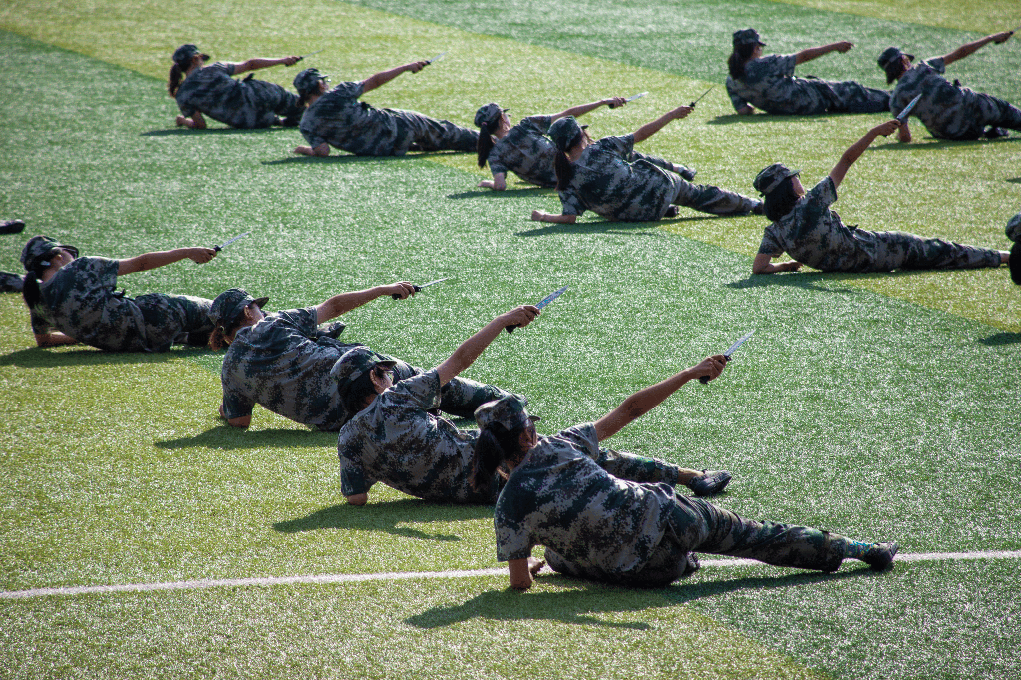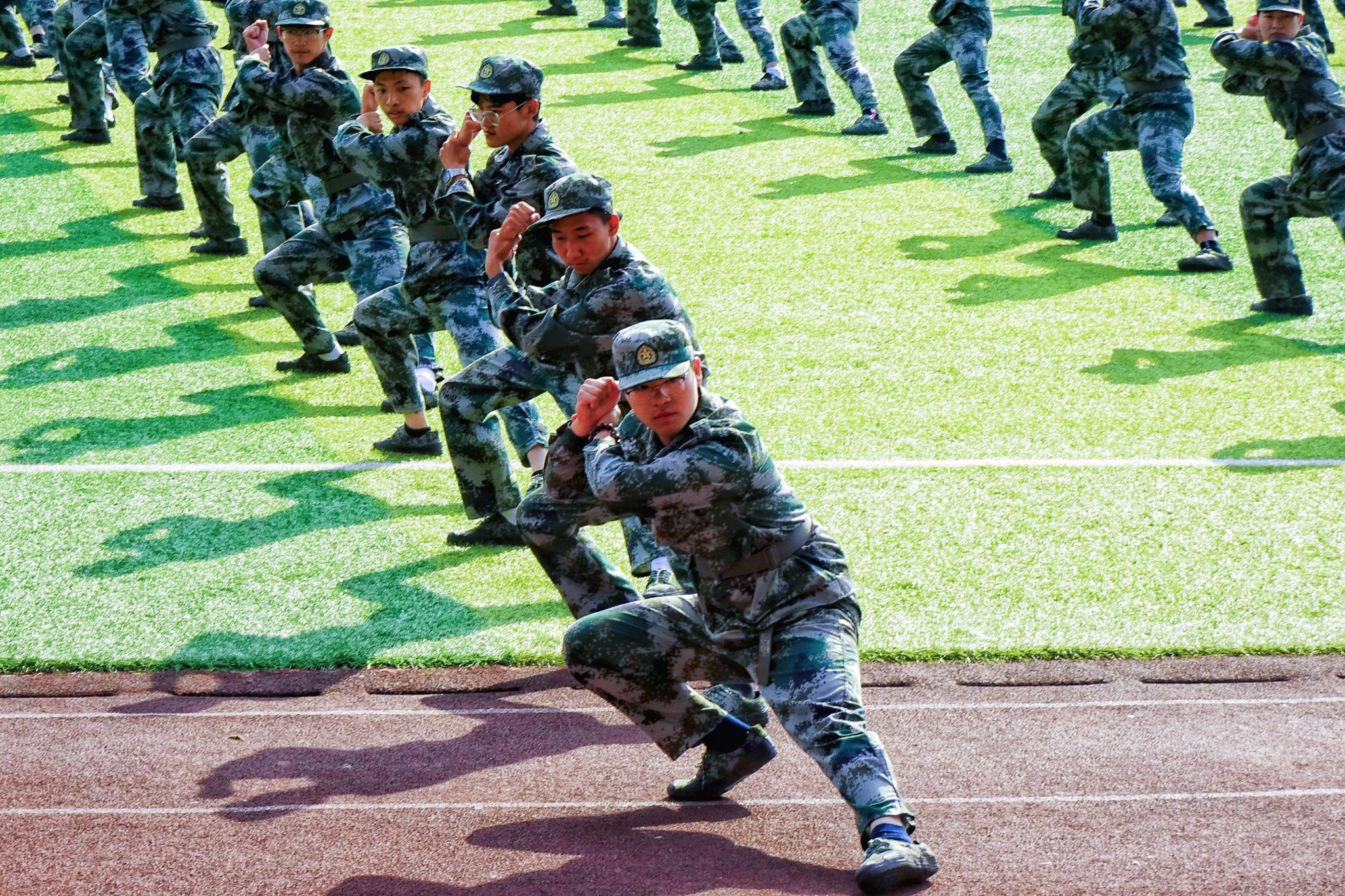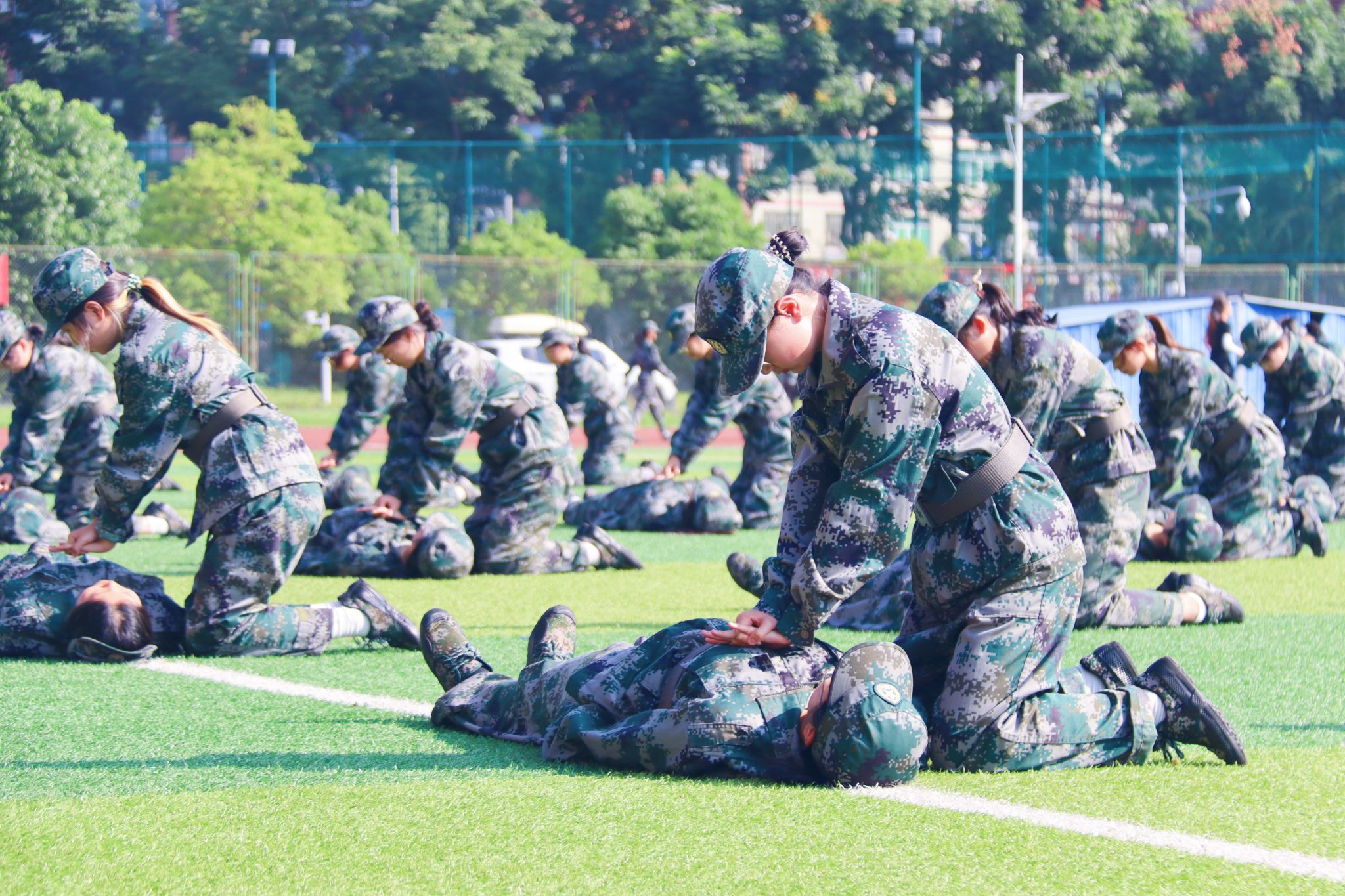 軍訓成果展示中,豪邁磅礴的分列式方陣,颯爽矯健的擒敵、戰(zhàn)術方隊,意氣風發(fā)的旗語方隊,英勇無畏的匕首、刺殺方隊,沉著冷靜的救護方隊,展現(xiàn)出一幅幅生動的愛國主義教育圖景,軍人般的壯志氣魄與同學們飛揚的青春交相輝映,充分展示了西財學子意氣風發(fā)的青春活力和積極進取的精神風貌。