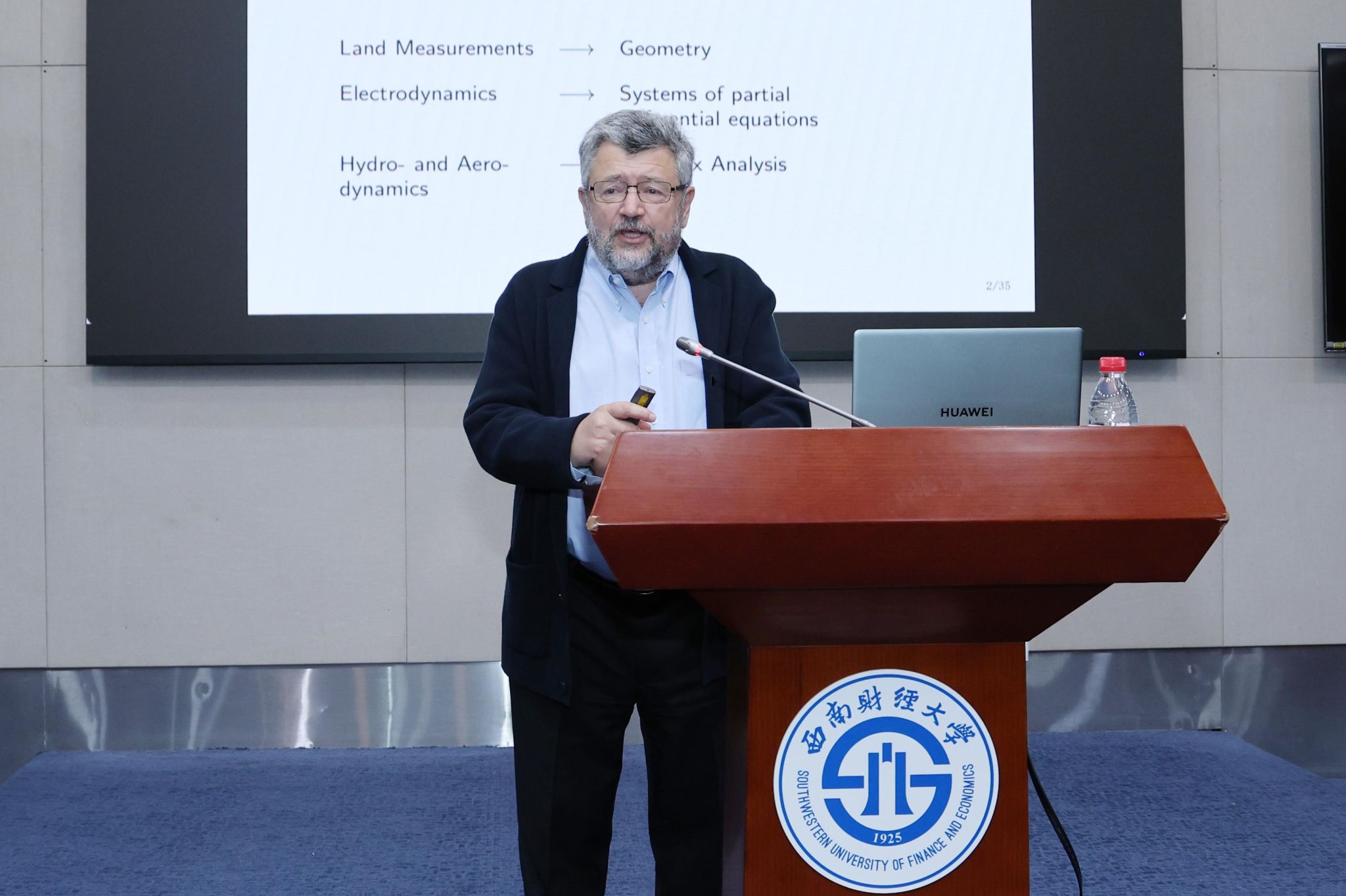 馬永強(qiáng)對(duì)杰曼諾夫教授表示熱烈歡迎,并介紹了學(xué)校發(fā)展歷史與基本情況。他表示,數(shù)學(xué)學(xué)科是助力學(xué)校全面推進(jìn)“新財(cái)經(jīng)”戰(zhàn)略升級(jí)的有力支撐,是學(xué)校“理工攀登”與“新興交叉”學(xué)科建設(shè)計(jì)劃的重要基石,也是服務(wù)于“新財(cái)經(jīng)”人才培養(yǎng)和交叉學(xué)科創(chuàng)新的重要保障,希望杰曼諾夫教授對(duì)學(xué)校數(shù)學(xué)學(xué)科、數(shù)學(xué)學(xué)院的發(fā)展給予更多指導(dǎo)和支持。