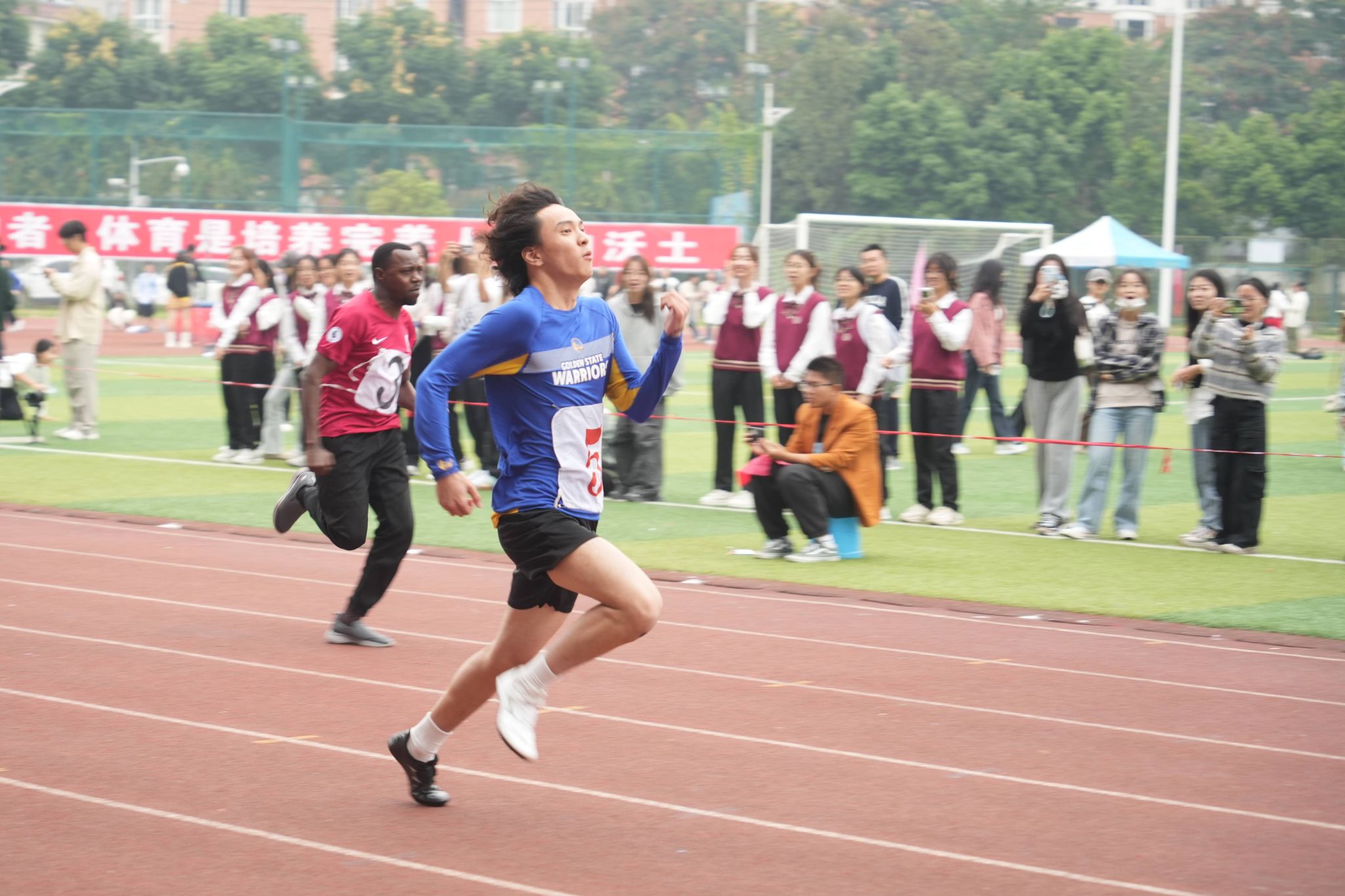 本屆運動會設有田徑、網球、乒乓球、羽毛球、臺球、定向越野、彩虹跑、集體跳繩、拔河和仰臥起坐等40個競賽項目,參賽?數超2萬?次,體育嘉年華活動持續精彩上演。賽道上,運動健兒盡情揮灑汗水,頑強拼搏沖刺夢想。看臺上,吶喊聲此起彼伏,加油助威共赴榮耀。本屆運動會更有校友代表隊首次亮相,金秋歡聚、再展風采,暢享運動激情、共迎百年校慶。全體師生以飽滿的熱情、昂揚的姿態積極投身體育運動,奮勇拼搏、超越自我、享受?賽,共同繪就體育場上的靚麗風景線。