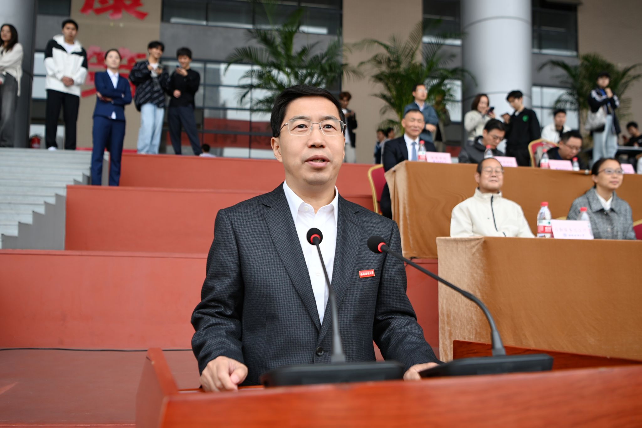 10月25日下午,運動會圓滿結束,史代敏致閉幕辭,希望同學們牢固樹立健康第一的理念,始終踐行體育格言,做好自己健康的第一責任人,在運動中增強體質、錘煉意志、享受樂趣、收獲友誼,讓青春在全面推進中國式現代化的火熱實踐中綻放絢麗之花。