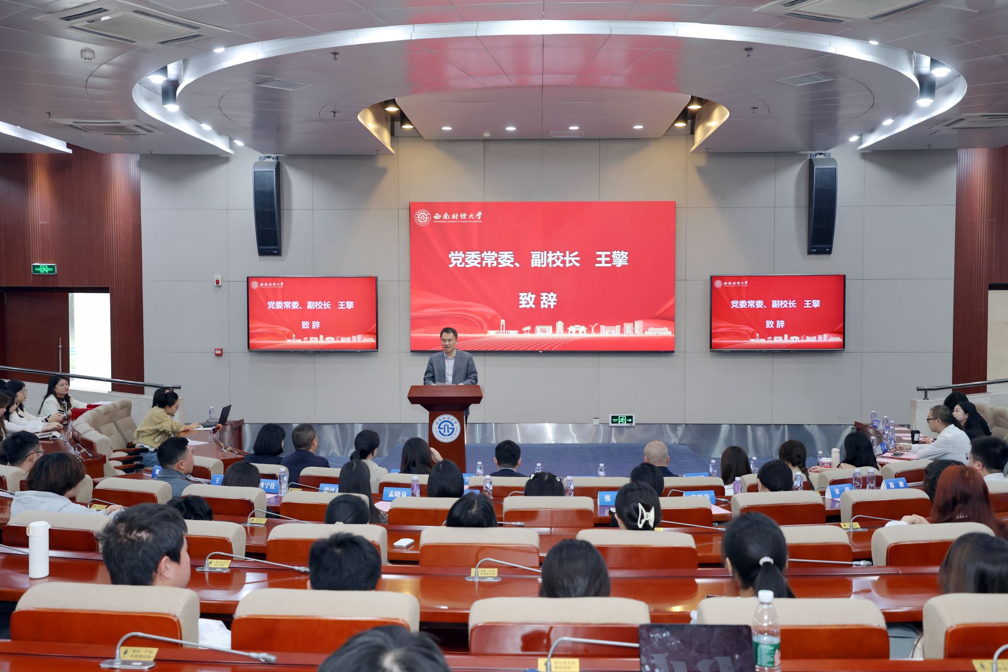 王擎對與會嘉賓表示熱烈歡迎,衷心感謝大家長期以來對學校的關心支持,并介紹了學校發展情況、應用經濟學學科建設重點和近期成效。他希望校企雙方以“菁融計劃”實習項目為紐帶,持續推進深度合作,形成協同育人新局面,為教育強國、金融強國建設貢獻智慧力量。王擎寄語西財學子,心懷“國之大者”,堅定將個人所學所研融入國家發展所需,爭做德智體美勞全面發展、堪當強國建設、民族復興大任的棟梁之材。