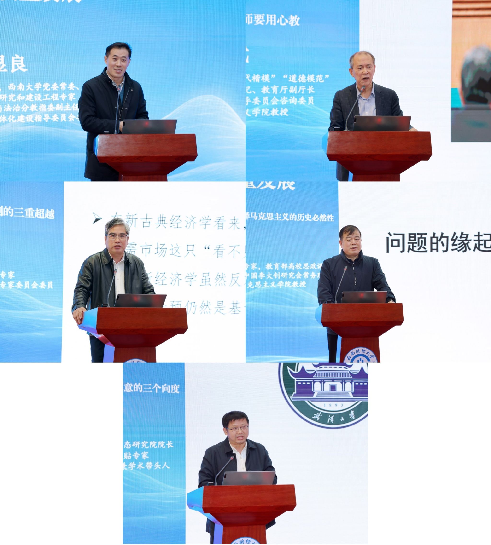 主旨發言第一環節,西南大學白顯良教授、大連海事大學曲建武教授、北京大學孫來斌教授、南開大學紀亞光教授、武漢大學項久雨教授圍繞進一步全面深化改革與思政課高質量發展作主旨報告。第二環節,四川大學蔣永穆教授、電子科技大學吳滿意教授、西南財經大學唐曉勇教授、西南交通大學田永秀教授、四川省委黨校(四川行政學院)李剛教授、成都理工大學李奮生教授圍繞會議主題作主旨發言。