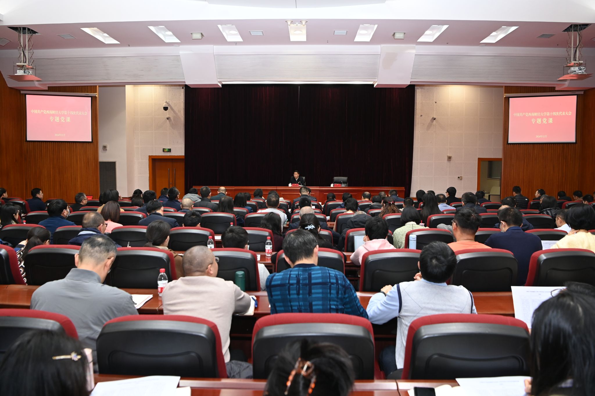 12月11日,黨委書記趙建軍為參加中國共產黨西南財經大學第十四次代表大會的244名代表講授專題黨課,強調要深入學習貫徹習近平總書記在黨的二十屆三中全會和全國教育大會上的重要講話精神,深刻認識學校第十四次黨代會的重大意義和主要任務,明晰黨代表的職責權利和任務要求,深化理論武裝、統一思想認識、提升履職能力、強化責任擔當,以飽滿的政治熱情和昂揚的精神狀態參加大會,為學校第十四次黨代會勝利召開打牢思想基礎、提供堅強保障。