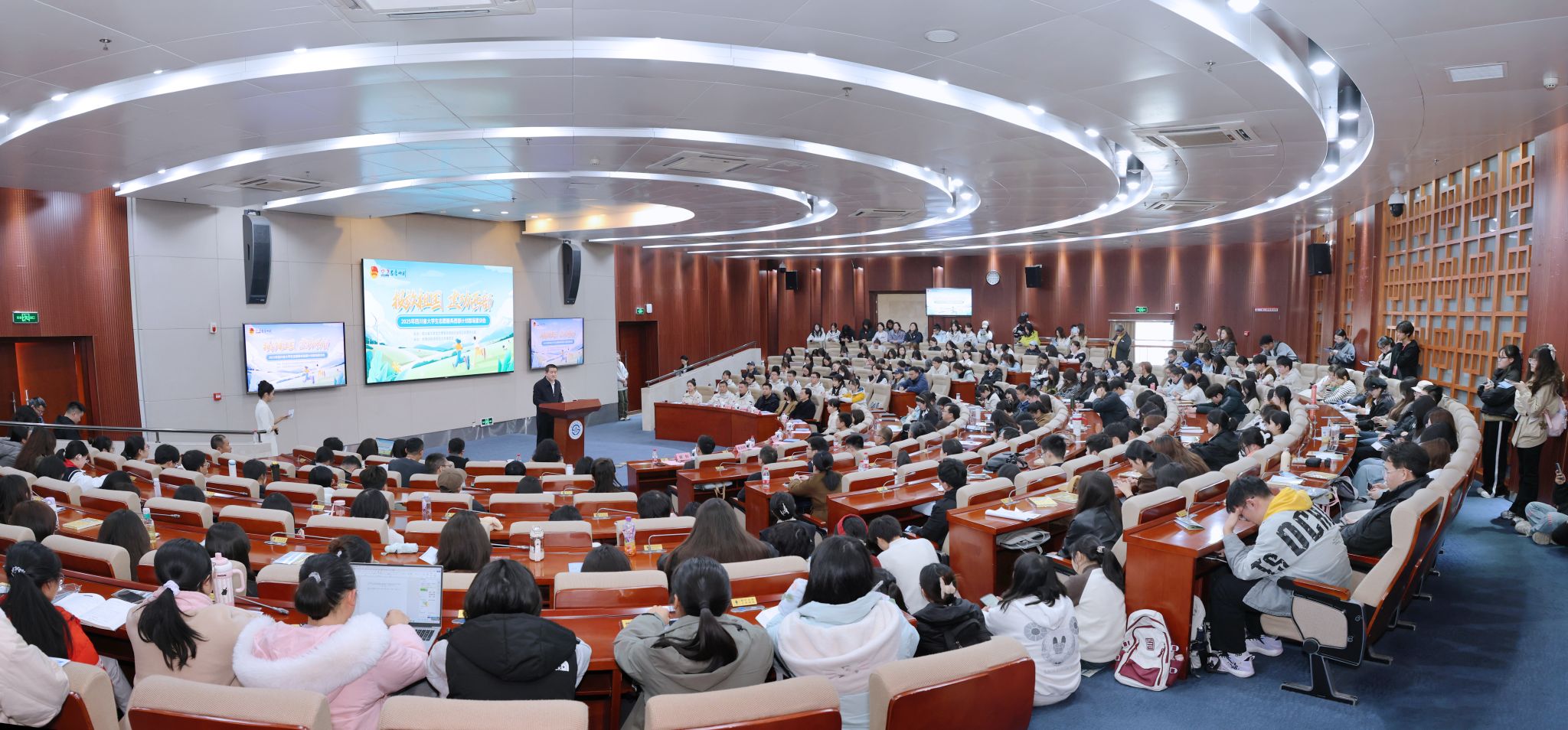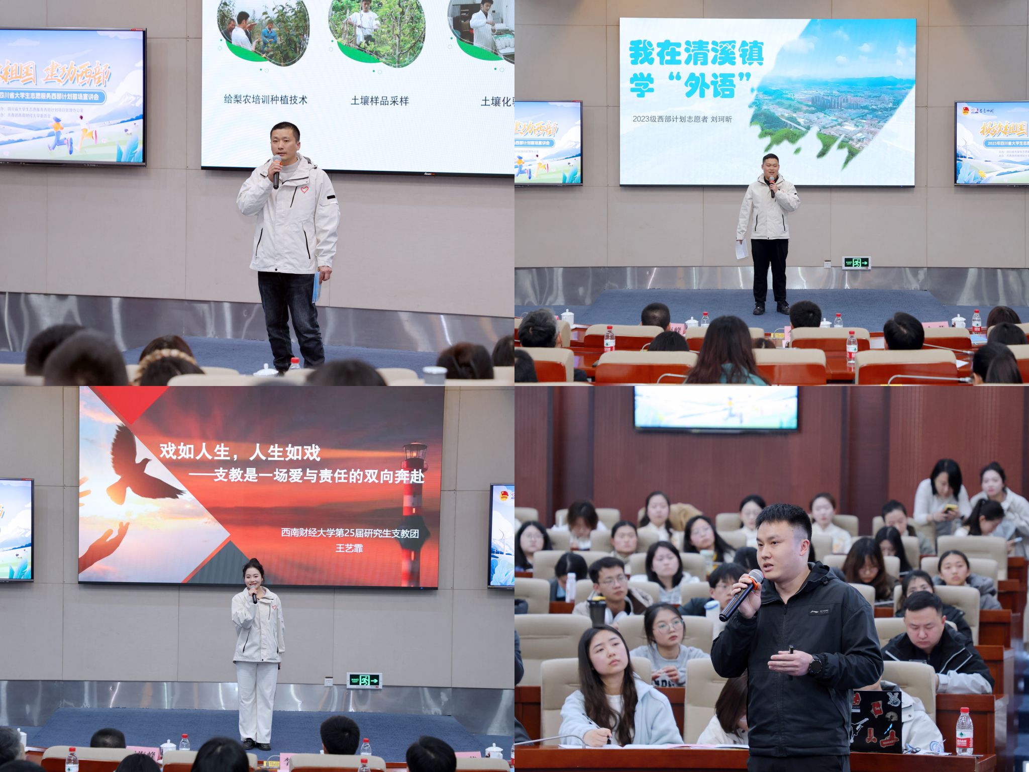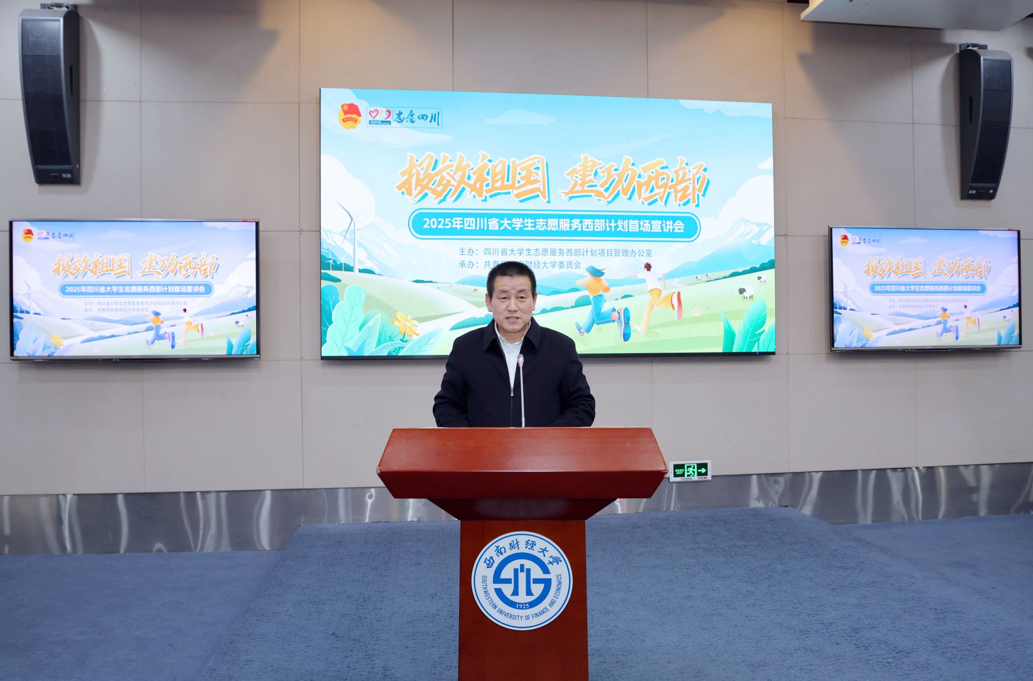 2025年四川省大學生志愿服務西部計劃首場宣講會成功舉辦,進一步弘揚了“奉獻、友愛、互助、進步”的志愿精神,激發了廣大西財青年投身西部建設的熱情與信心。新百年新征程,新時代西財青年正以昂揚之姿奔赴山海,將個人理想熔鑄于國家發展戰略,以“自找苦吃”的韌勁向下扎根,在基層一線實踐中磨礪意志,于服務群眾點滴事務中增長才干,書寫屬于當代西財青年挺膺擔當的生動答卷。