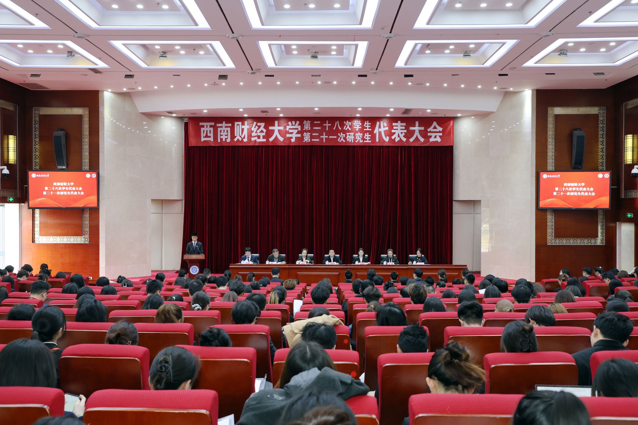 3月21日,經學校黨委和四川省學聯批復同意,西南財經大學第二十八次學生代表大會、第二十一次研究生代表大會在柳林校區召開。學校黨委副書記明海峰,四川省學生聯合會駐會執行主席趙鴻綿,成都市學生聯合會駐會執行主席史嘉靈出席會議。學生工作部、校團委、研究生院相關負責人以及各學院(研究院)團組織負責人,全校159名學代會代表、124名研代會代表參加會議。