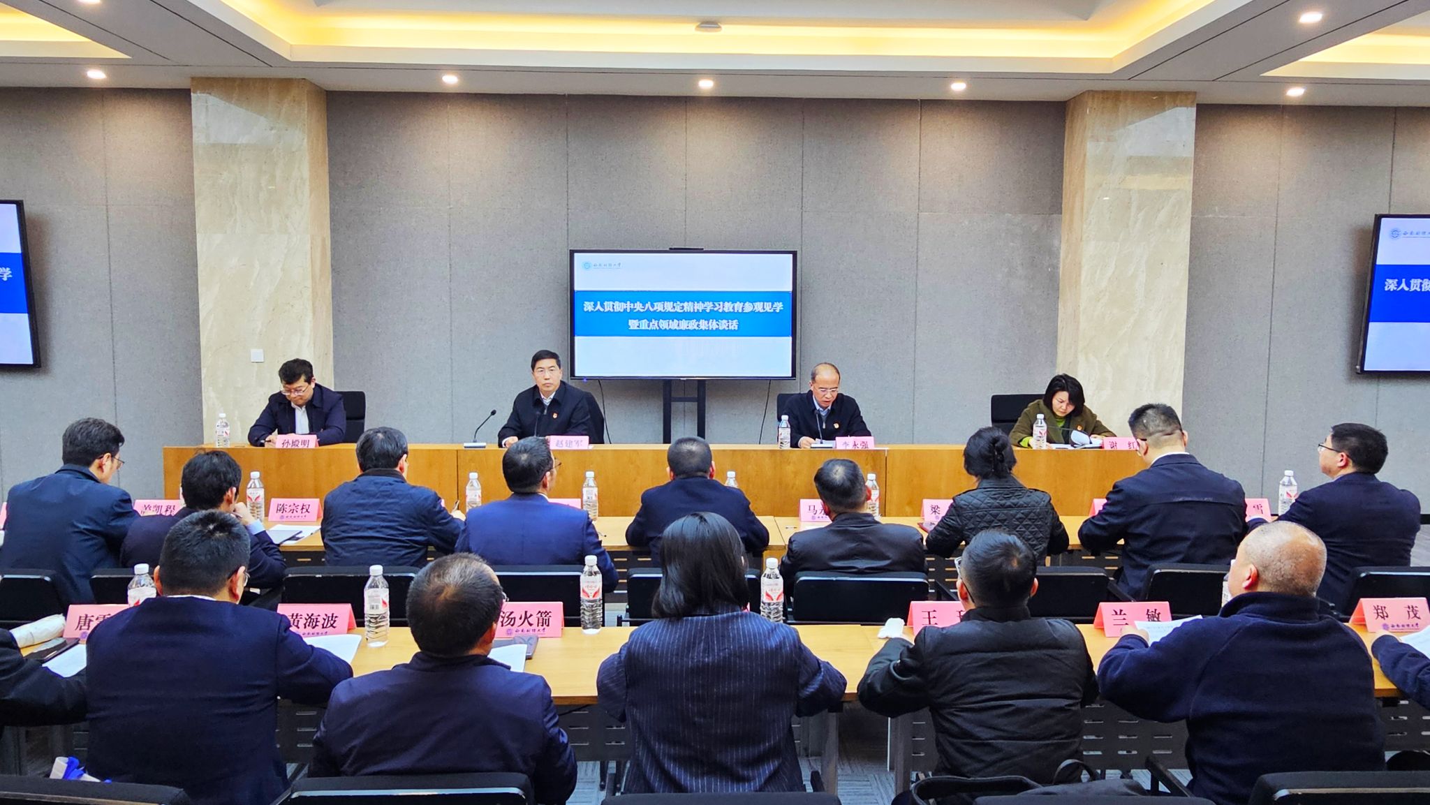 3月31日至4月2日,學校黨委舉辦深入貫徹中央八項規定精神學習教育讀書班。黨委書記趙建軍出席相關活動并講話。全體校領導、兩委委員、重點領域部門主要負責人、中層干部參加相關活動。