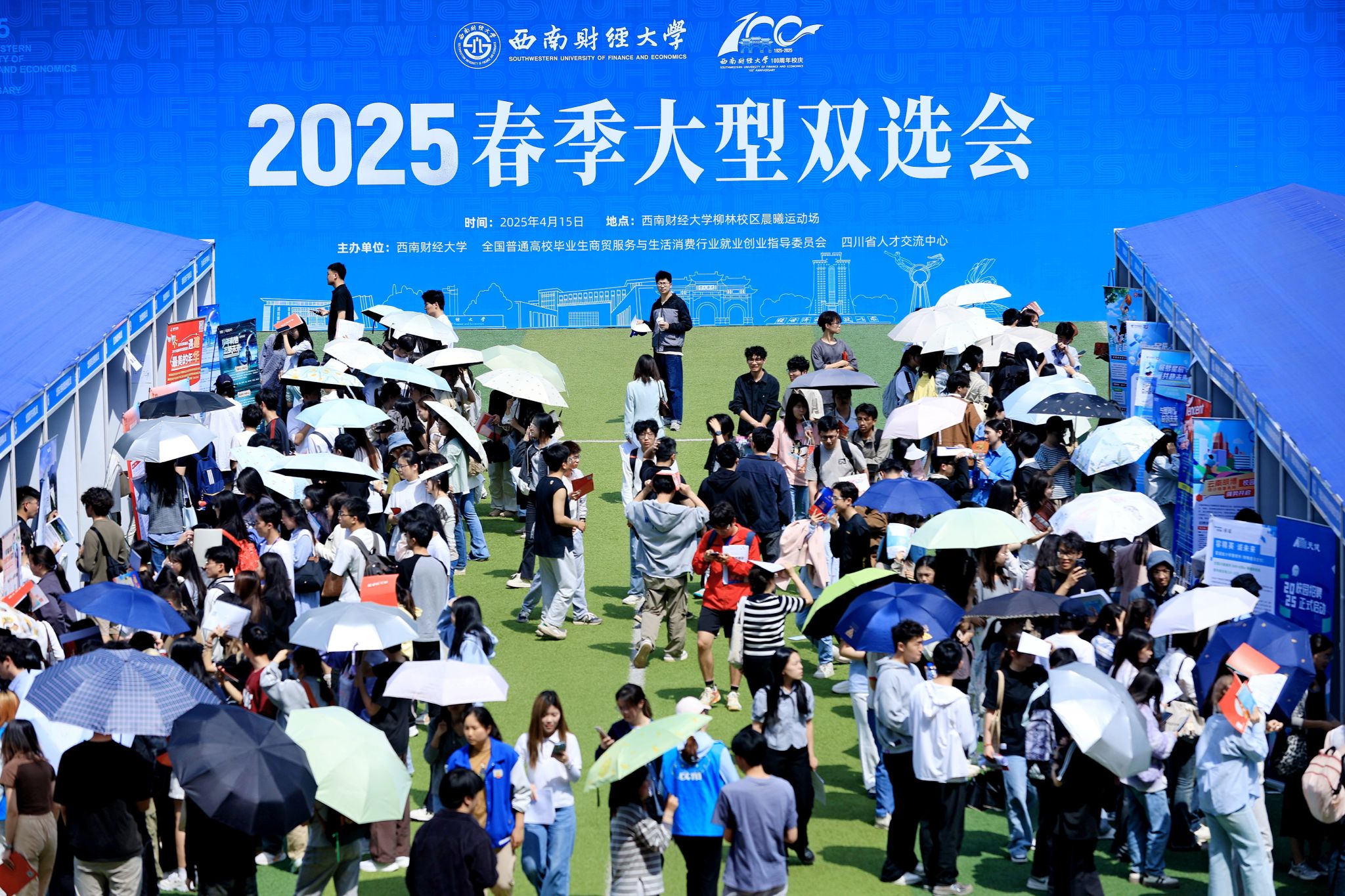 為深入貫徹落實黨中央、國務院關于促進高校畢業生高質量充分就業的決策部署,全面落實教育部“春季促就業攻堅行動”,學校于4月15日下午在柳林校區晨曦運動場成功舉辦2025年春季大型雙選會。匯聚全國240余家優質用人單位,涵蓋黨政機關、金融、信息技術、制造、商務服務、教育、文化娛樂等多個領域,提供就業實習崗位7500余個,吸引畢業生踴躍參與,精準搭建校企對接橋梁。