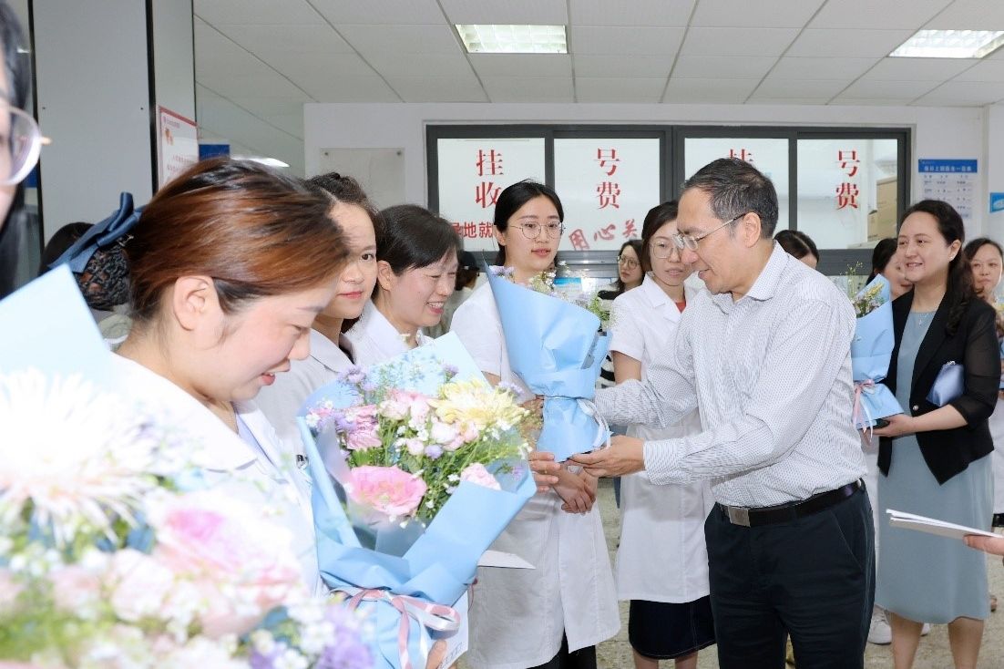 5月12日,在114個國際護士節來臨之際,受學校黨委書記趙建軍和黨委副書記、校長李永強委托,黨委常委、副校長史代敏前往兩校區校醫院親切慰問一線醫護人員。校工會、后勤服務總公司負責人陪同慰問。