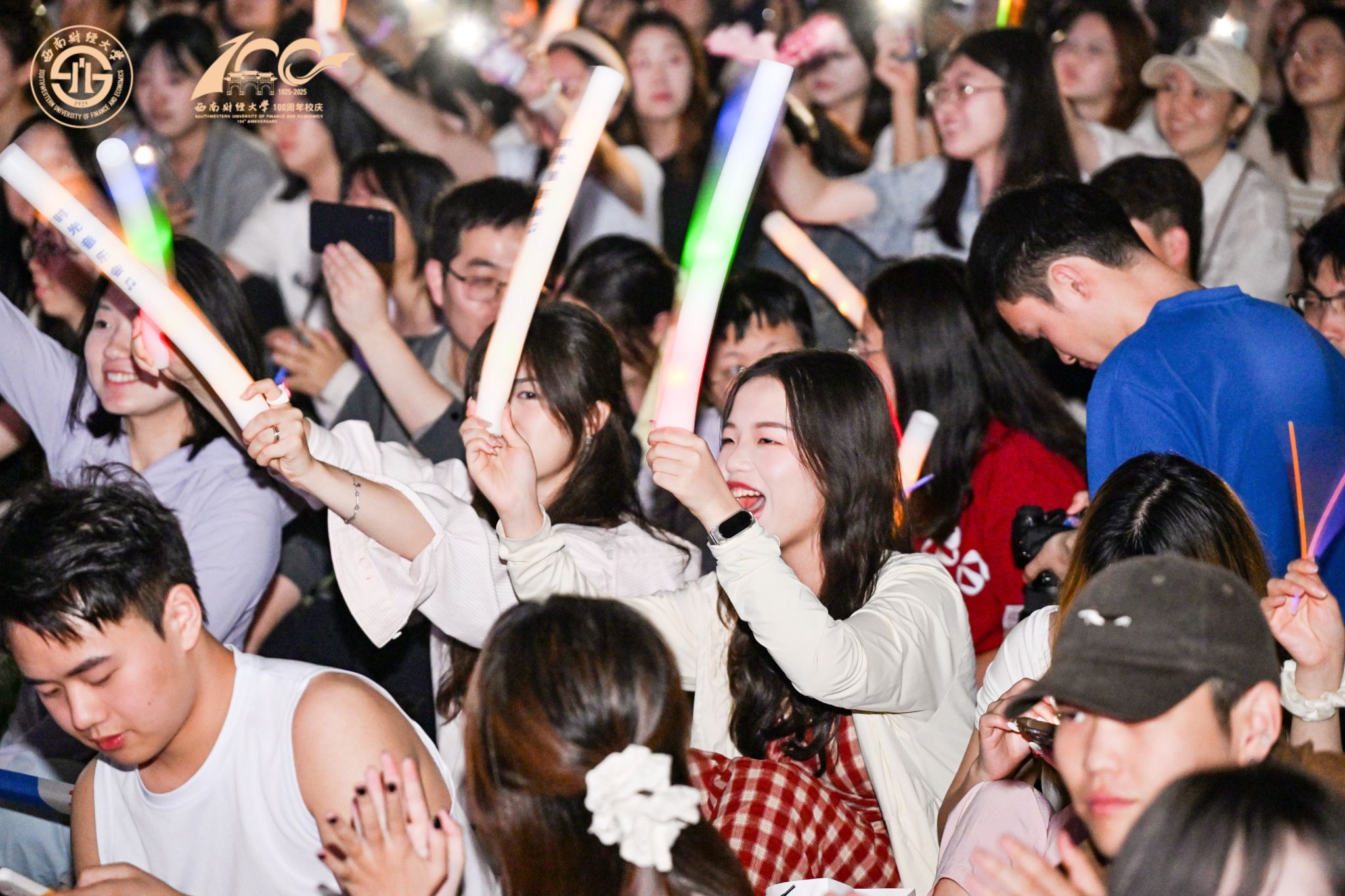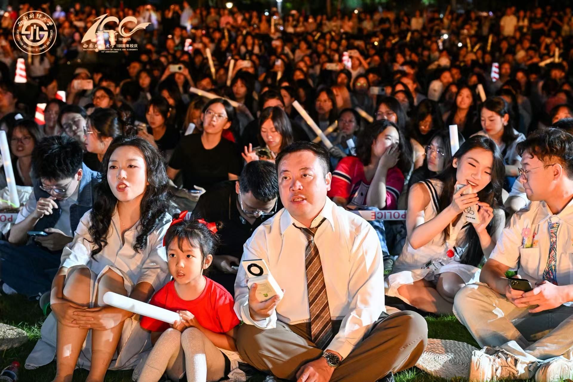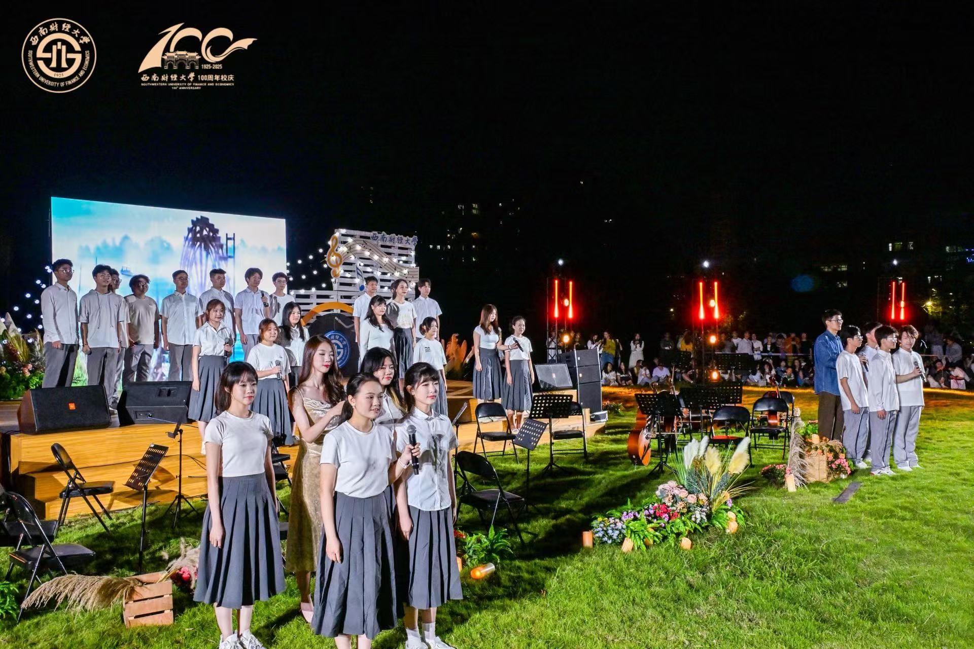 音樂(lè)會(huì)在《紅旗頌》中拉開序幕,激昂旋律印證著學(xué)校跨越世紀(jì)的歲月崢嶸,歷經(jīng)百年的文脈綿延。在第一篇章“歲月如歌”,師生校友傾情演唱《光陰的故事》《同桌的你》等一曲曲經(jīng)典歌曲,悠揚(yáng)動(dòng)聽的歌聲喚起了最美好的青春記憶。第二篇章伊始,《海闊天空》《老男孩》《遇見(jiàn)》等經(jīng)典曲目接續(xù)上演,師生校友“踏歌而行”,共同演繹成長(zhǎng)奮斗故事。現(xiàn)場(chǎng)氛圍熱烈,歌曲與光影交織,情感共鳴強(qiáng)烈。光華合唱團(tuán)原創(chuàng)作品《光華里的你》,深情開啟音樂(lè)會(huì)第三篇章“高歌遠(yuǎn)航”,展現(xiàn)西財(cái)人對(duì)母校的深厚情感和強(qiáng)烈歸屬,將現(xiàn)場(chǎng)氣氛推向高潮。臺(tái)上臺(tái)下齊唱《成都》《送別》《友誼地久天長(zhǎng)》等歌曲,音樂(lè)會(huì)圓滿結(jié)束。