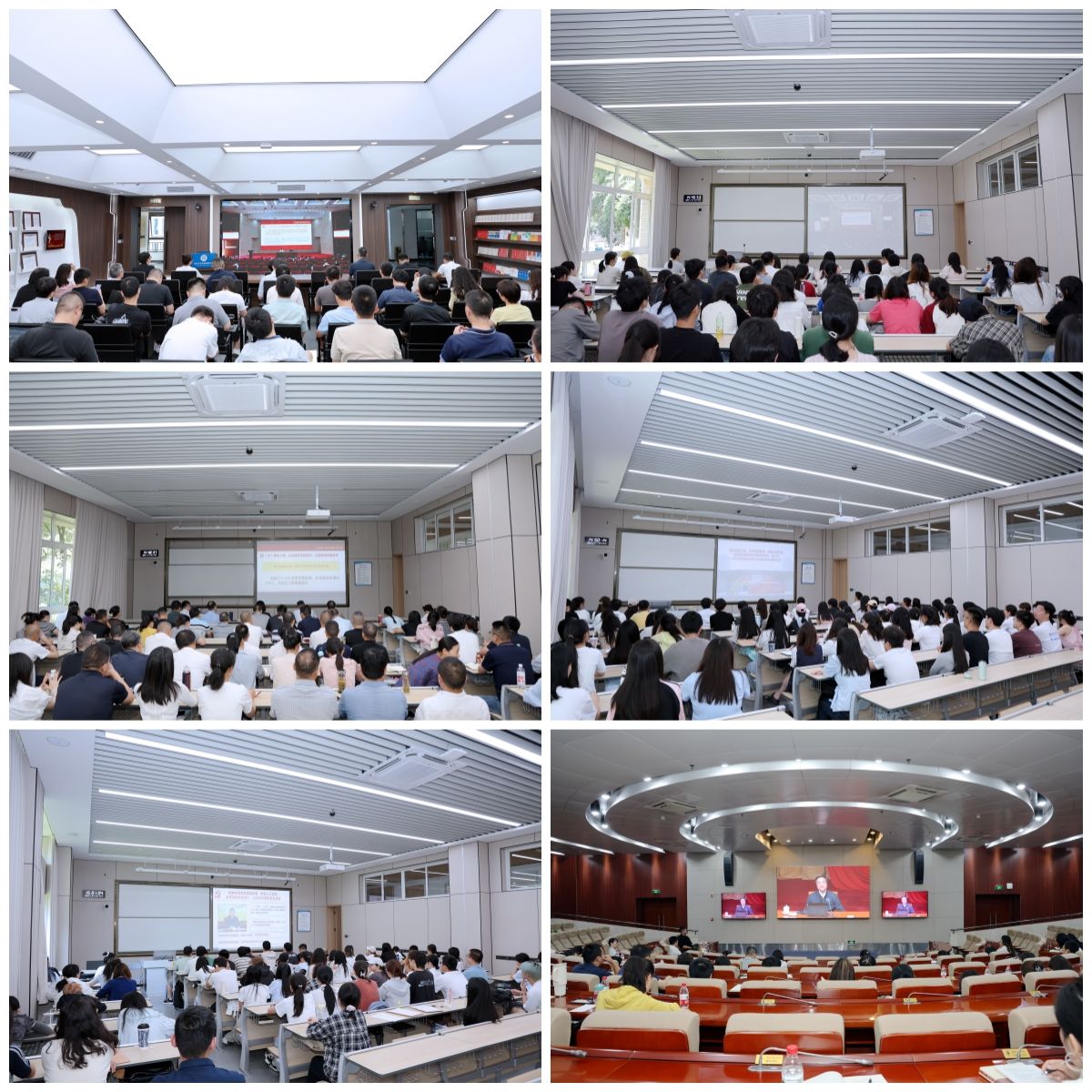 集中大課主會場設在柳林校區弘遠樓105會議室,全體在校校領導,學院(研究院)行政主要負責人,機關與直屬單位黨員代表,離退休教職工黨員代表,思政理論課教師代表,教師黨支部書記代表和學生黨支部書記代表到場參加培訓。全校其他師生黨員在兩校區65個分會場同步參加此次大課。