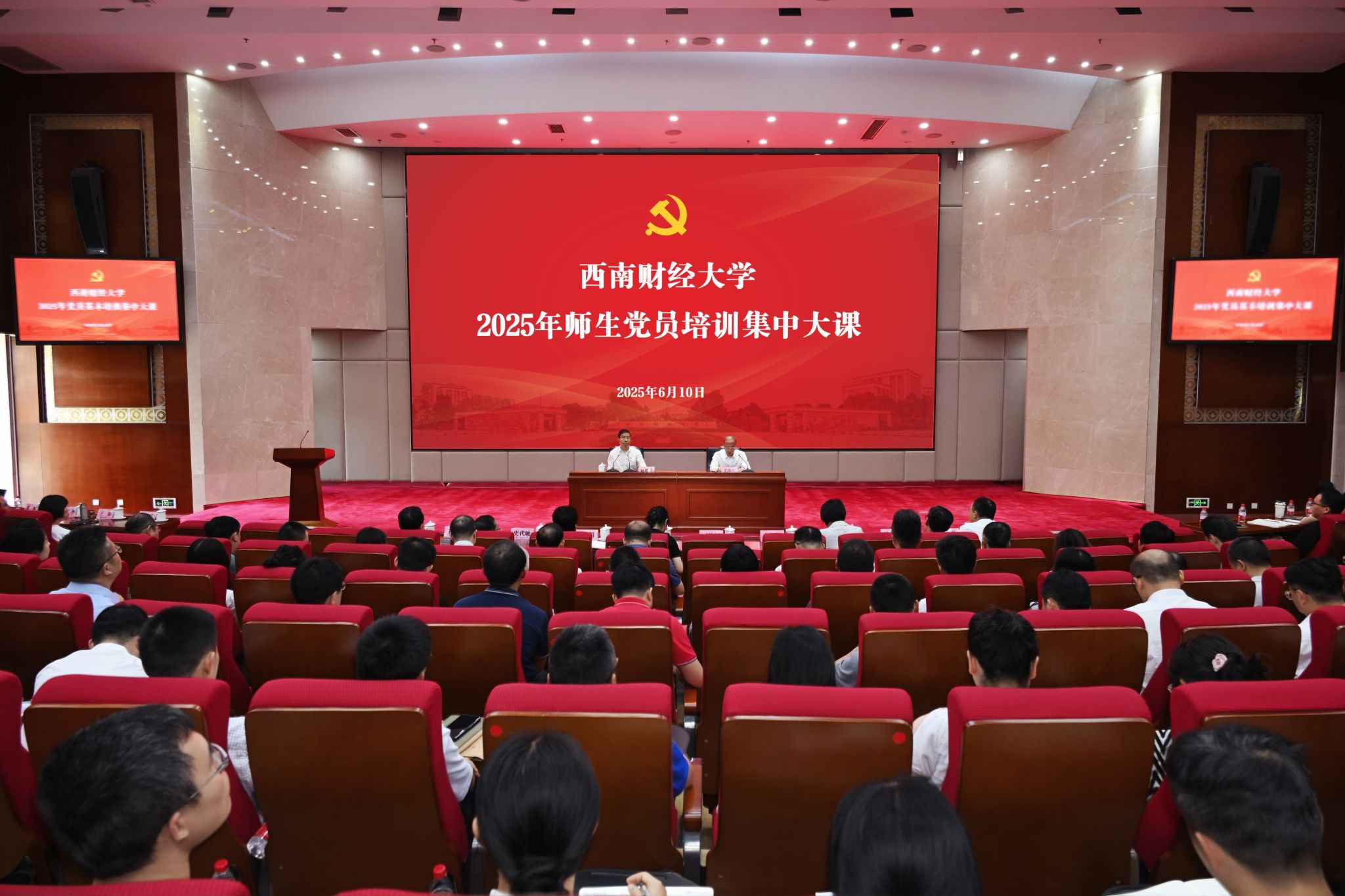 為深入學習貫徹習近平新時代中國特色社會主義思想,加強全體師生黨員黨性修養和理論素養,進一步提升黨員教育培訓工作實效,6月10日下午,學校舉行2025年師生黨員培訓第一次集中大課,觀看學習中央黨校(國家行政學院)黨的建設教研部副主任祝靈君教授講授的“學習貫徹習近平總書記關于加強黨的作風建設的重要論述和中央八項規定精神”專題課程。學校黨委書記趙建軍講話,并以《深入學習貫徹習近平總書記關于加強黨的作風建設的重要論述 以作風建設新成效開創高質量發展新局面》為題講專題黨課。教育部直屬高校黨建工作聯絡員朱健梅,四川省委教育工委有關處室負責同志到會指導。學校黨委副書記、校長李永強主持培訓。