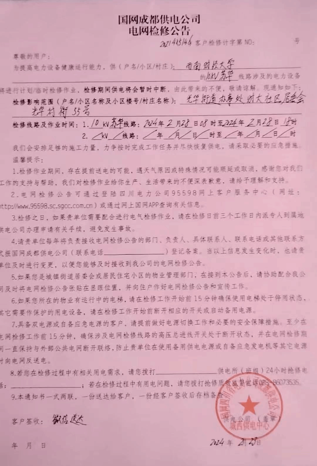 2.停電區(qū)域:光華全校區(qū)。
