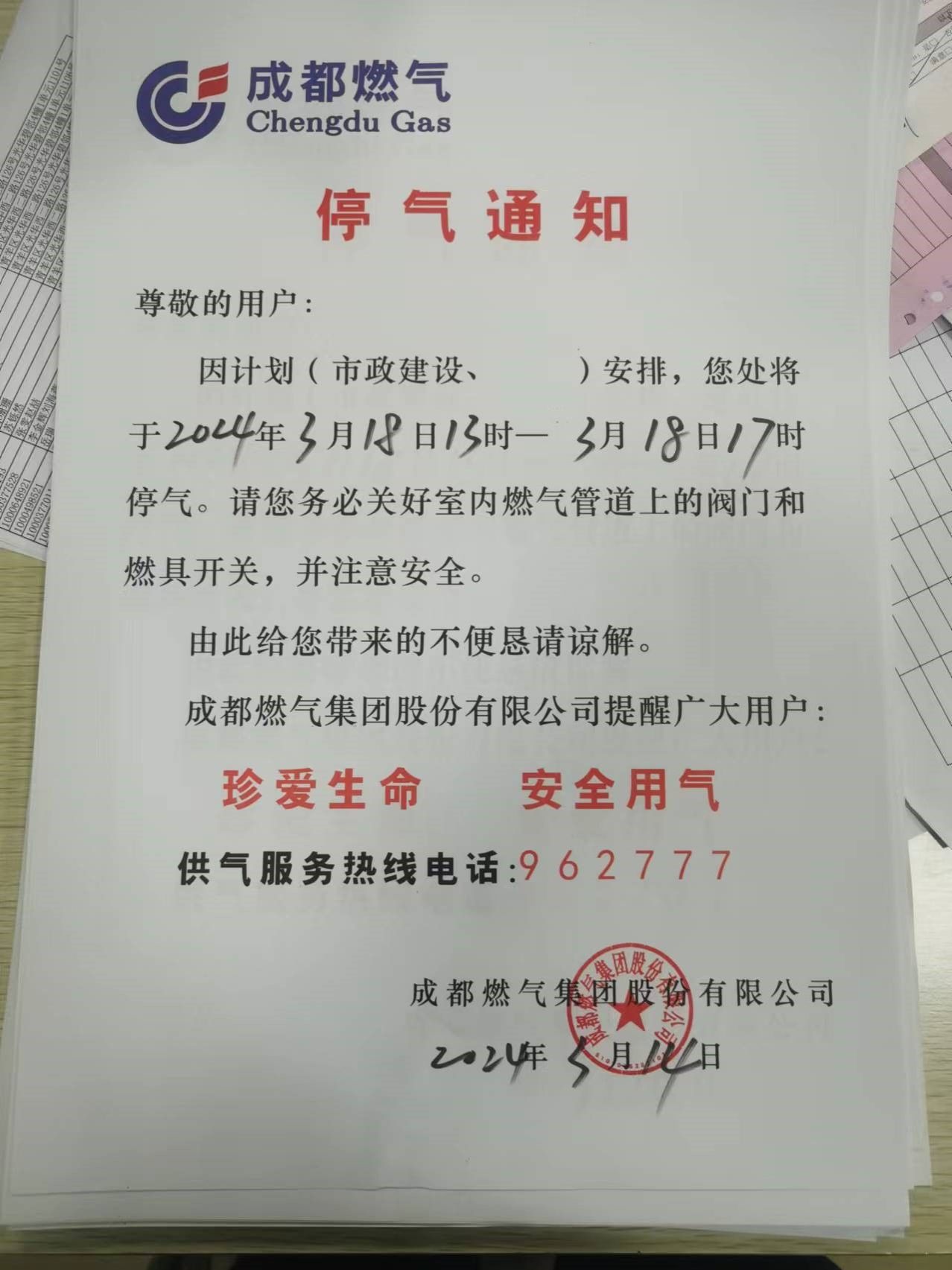 停氣時(shí)間:3月18日13:00—17:00