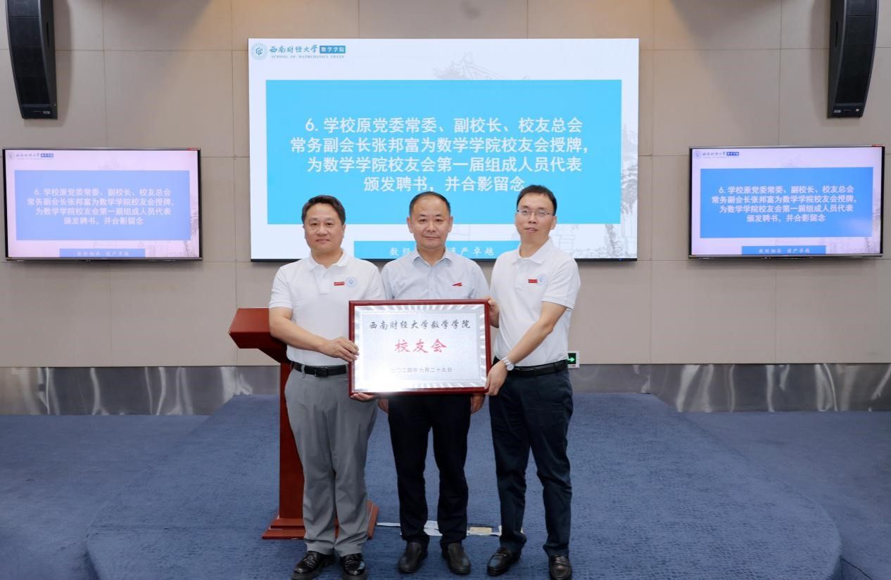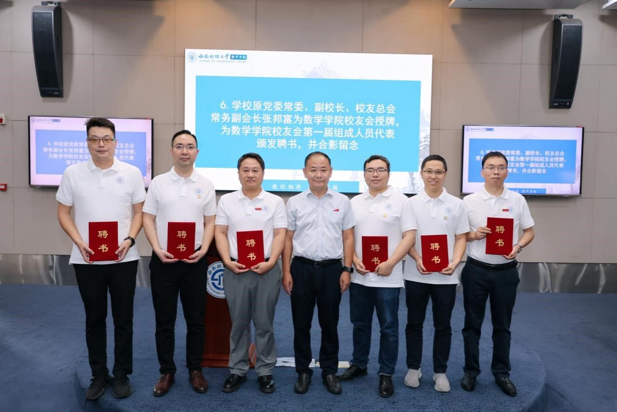會議宣讀了數學學院校友會成立批復和數學學院校友會第一屆組成人員名單。現場舉行了授牌儀式,頒發了聘書。