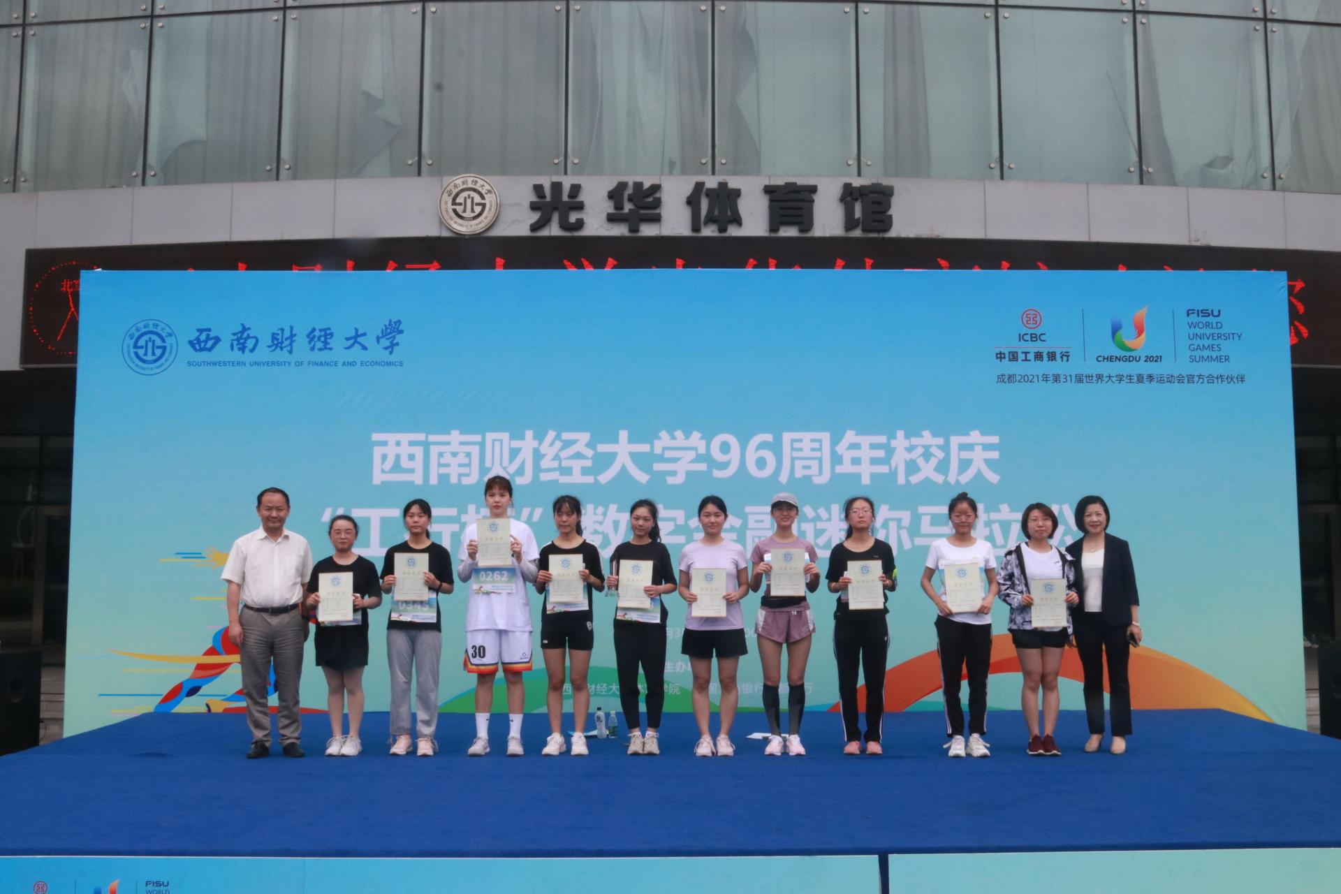 6月3日,我校在柳林校區舉行“西南財經大學96周年校慶‘工行杯’數字金融迷你馬拉松”比賽,吸引400余名師生參賽。學校黨委常委、副校長張邦富,中國工商銀行成都分行大運中心副主任王剛,溫江支行行長何曉濤,體育學院院長兼直屬黨支部書記楊遠波等出席活動。